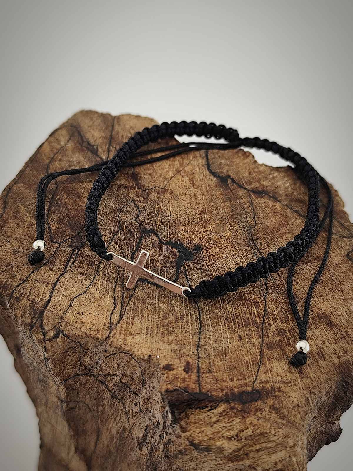 Подарете Гривна от черен конец със сребърно кръстче на любим човек или себе си, за да добавите нотка на нежност и духовност към вашия стил.