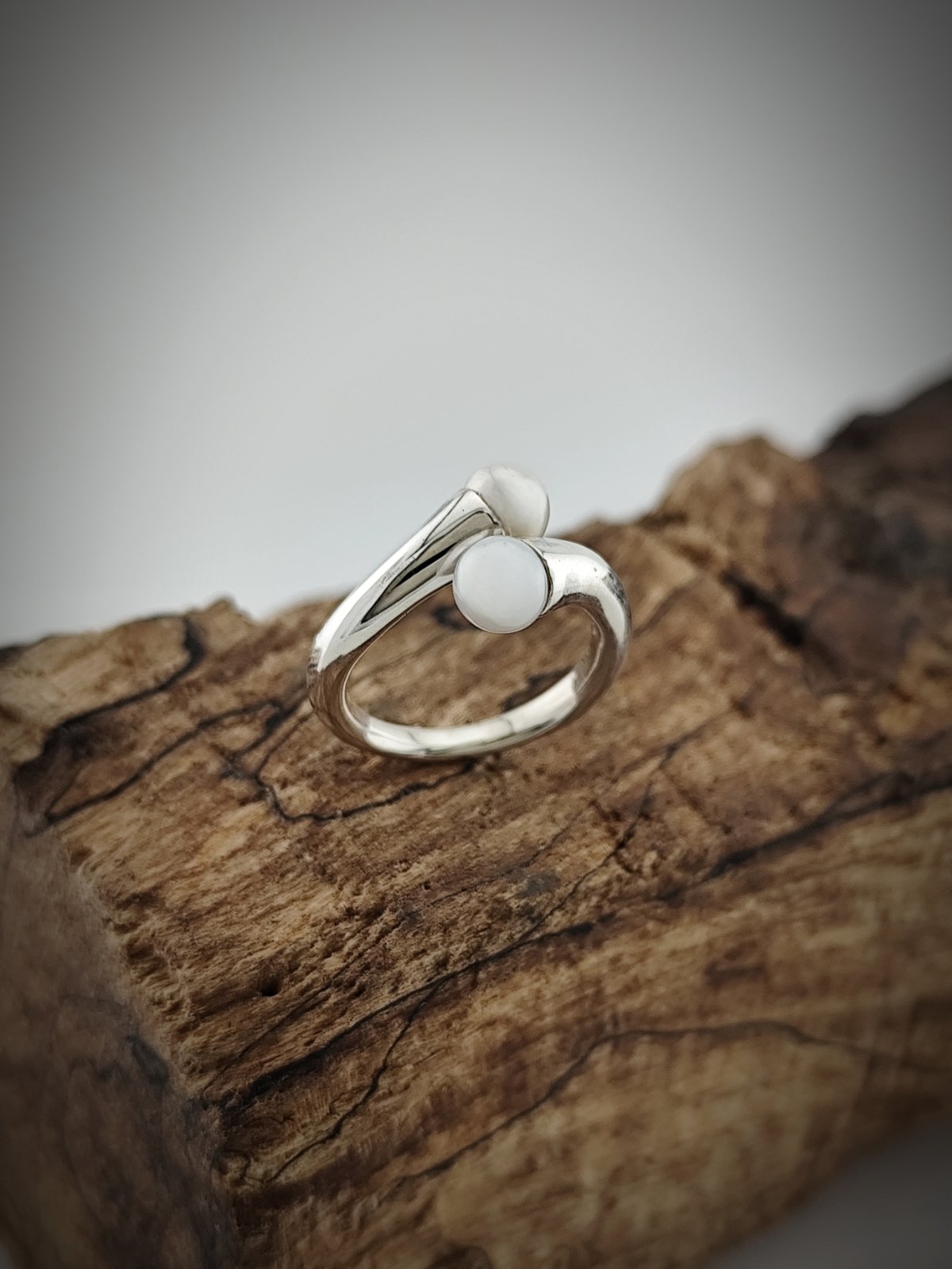 Пръстенът „Перлена нежност“ е вдъхновен от красотата и изяществото на перлата – вечния символ на чистота, любов и благородство. Двете речни перли, съчетани в елегантна сребърна халка, изобразяват хармонията между две сродни души, както и равновесието между вътрешния свят и външната красота.