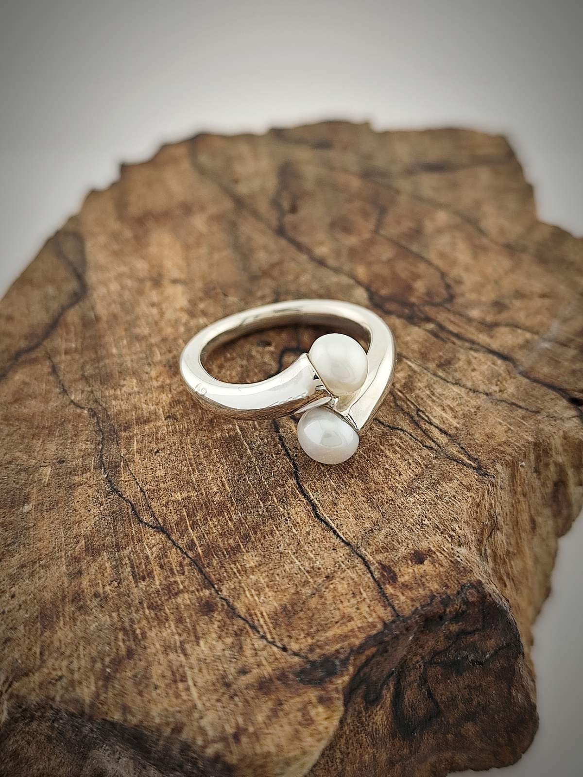 Дамски сребърен пръстен с две речни перли – изящен символ на любов, хармония и женственост.