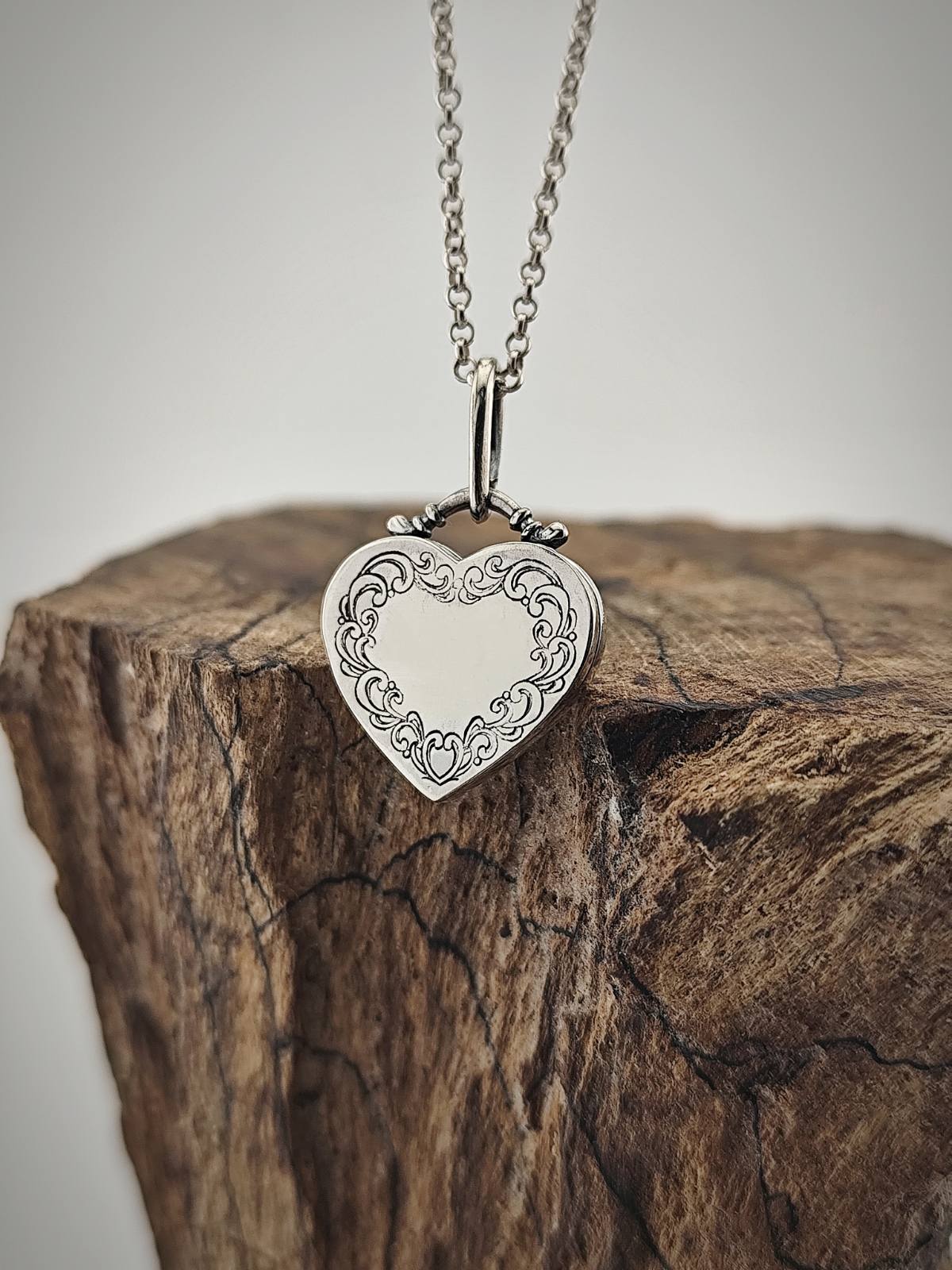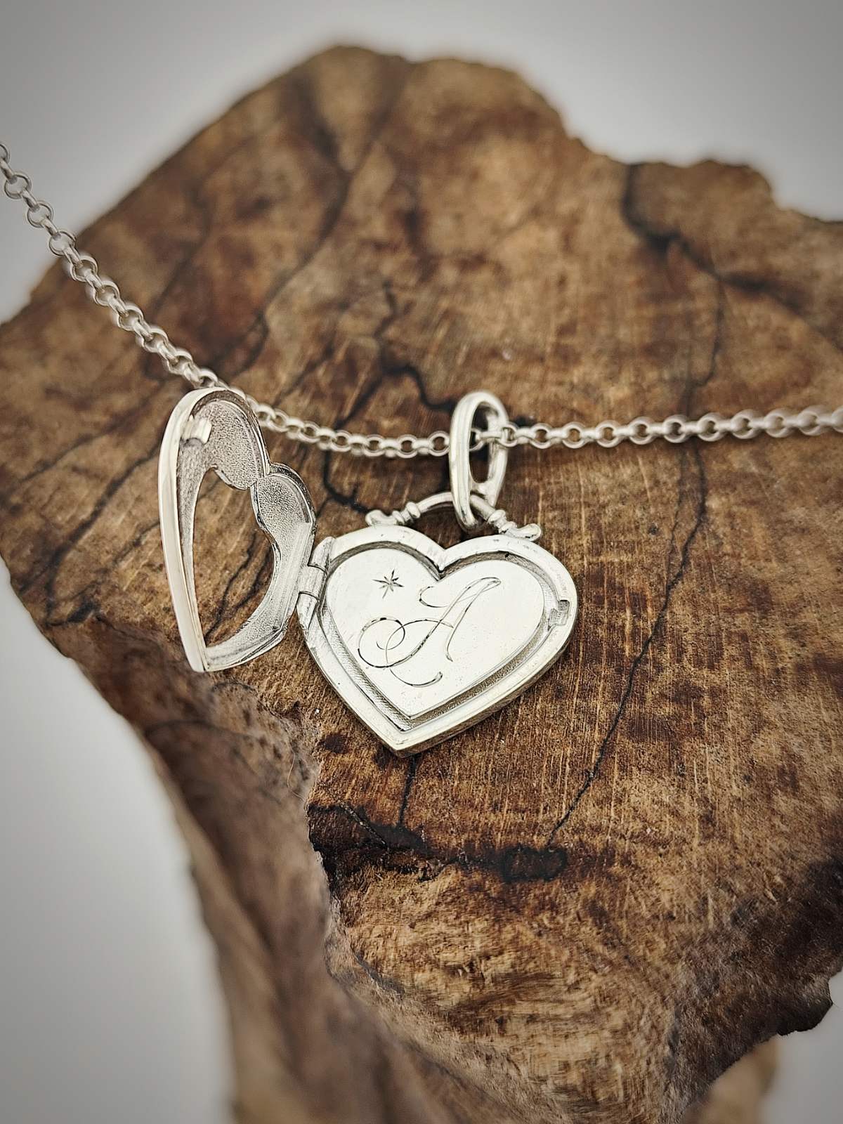 Сребърният медальон във формата на сърце символизира вечната любов, близостта и личната връзка между хората. С възможност за персонализиране чрез ръчно гравирана буква или дата, той става още по-личен и уникален подарък, който разказва история за специален момент или близък човек. Отварящото се капаче придава мистичност и тайна, което позволява да се съхраняват малки спомени – съкровище близо до сърцето.
