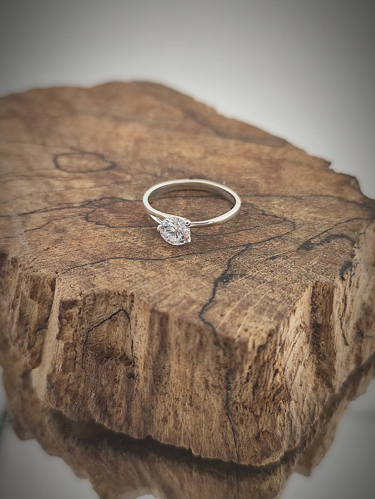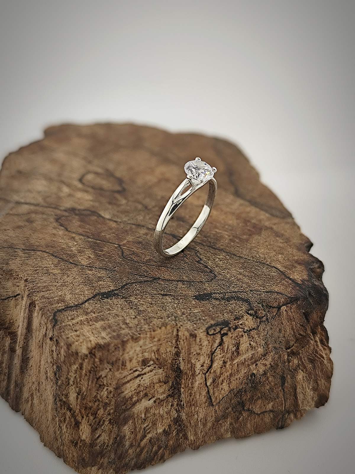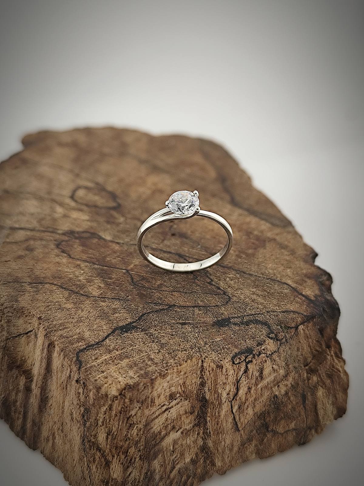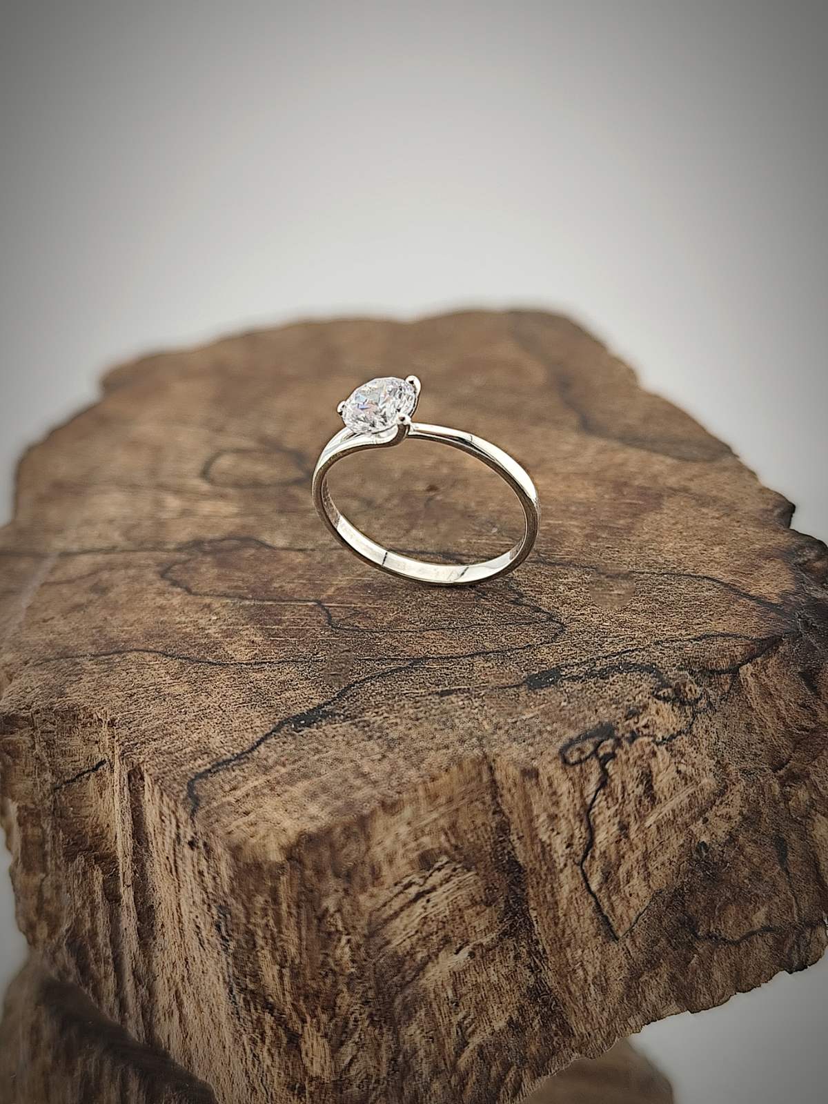 Елегантен годежен пръстен от сребро 925 с кръгъл бял камък – символ на чиста любов и вечно обещание.