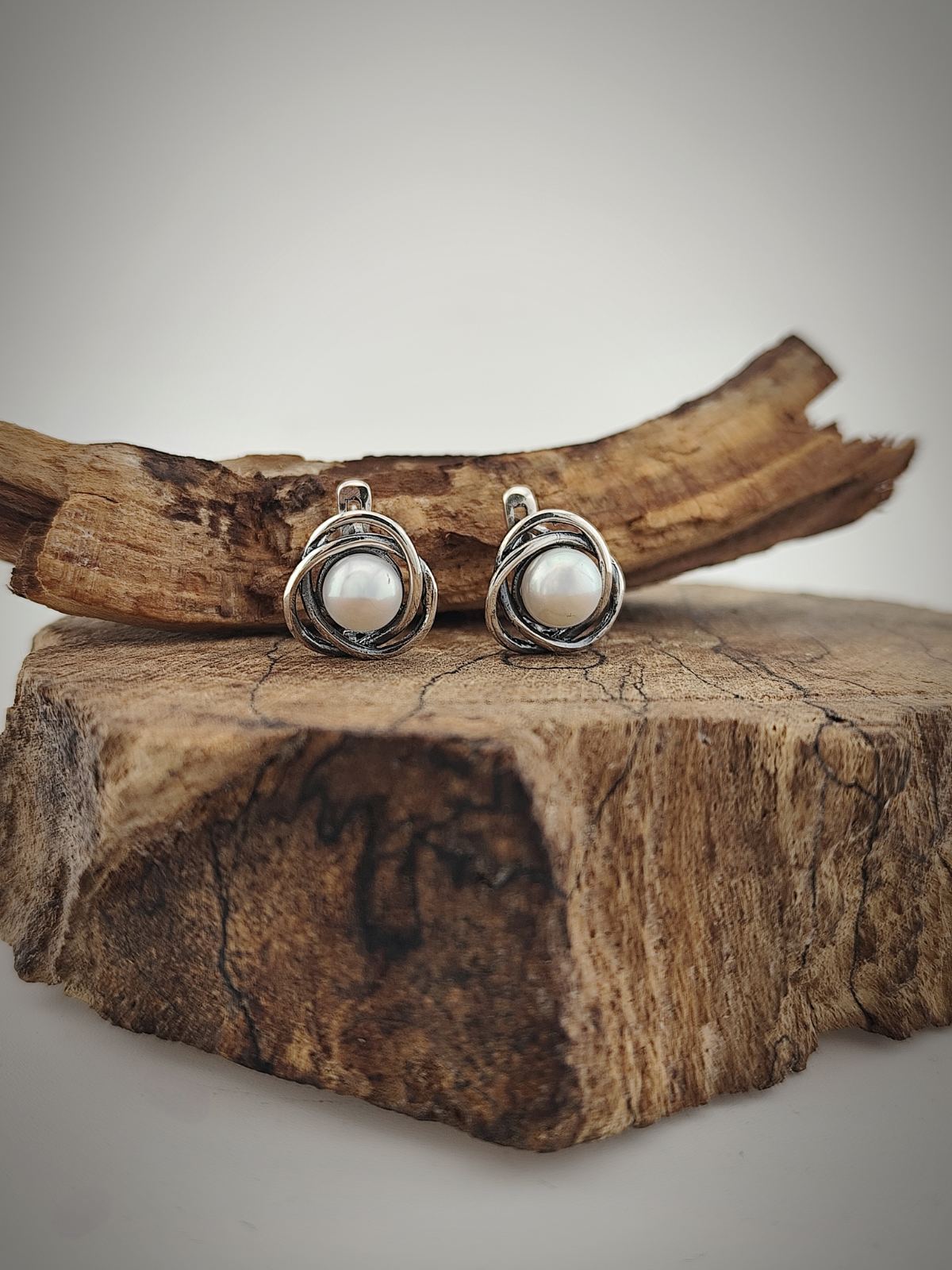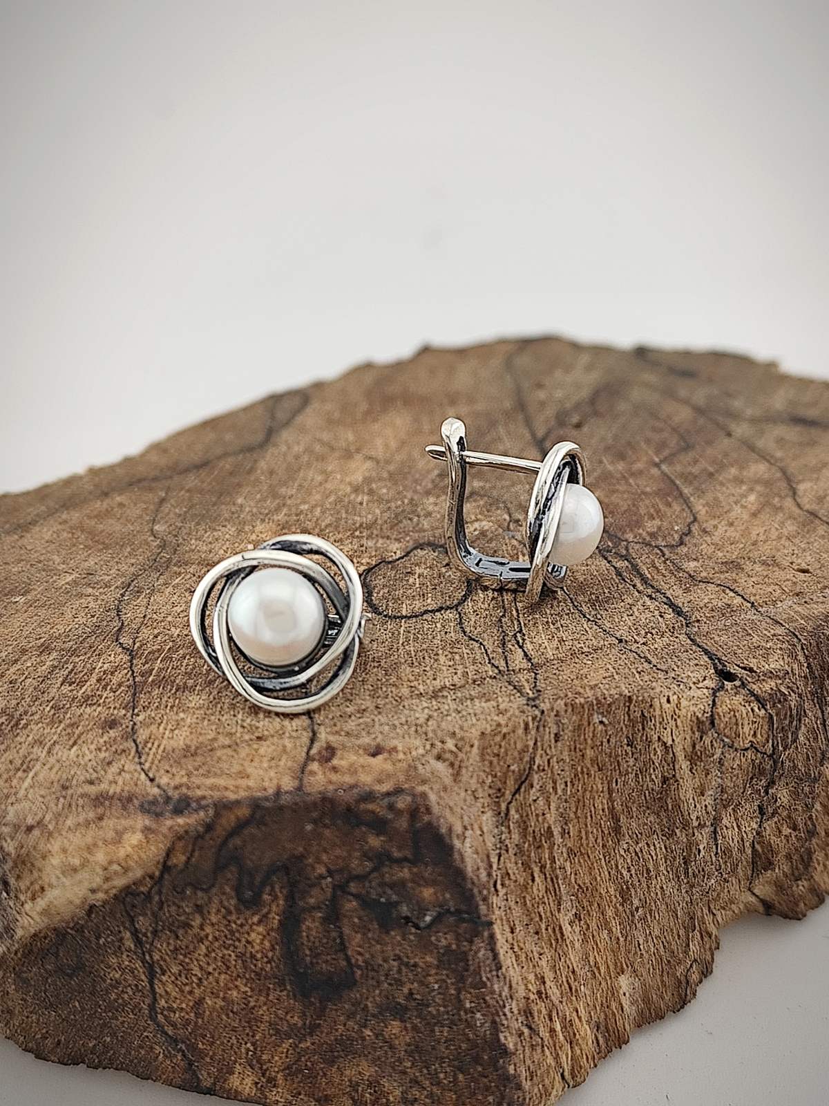 – сребърни обеци с английско закопчаване и перла