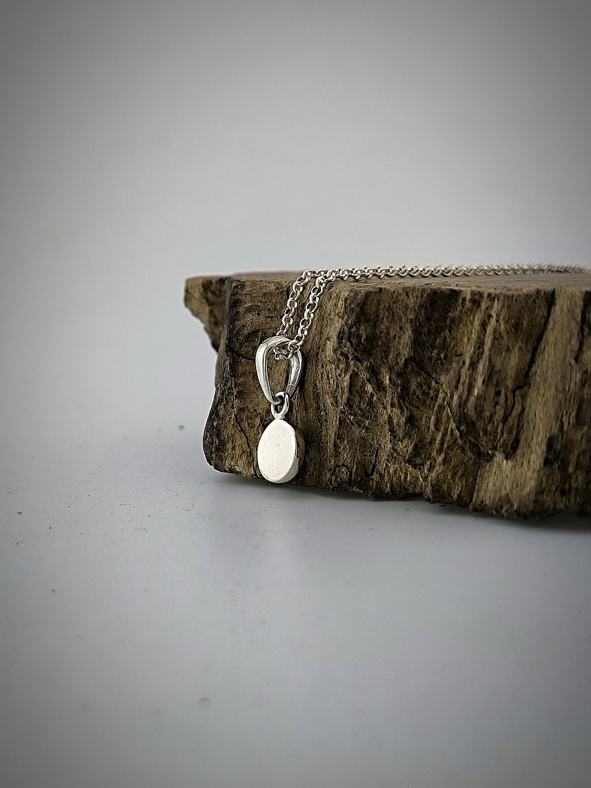 Дизайнът е максимално изчистен – кръгла сребърна форма, в която камъкът заема централно място. Няма излишни детайли, които да отвличат вниманието. Целта е една – да се подчертае цветът и естествената структура на камъка.