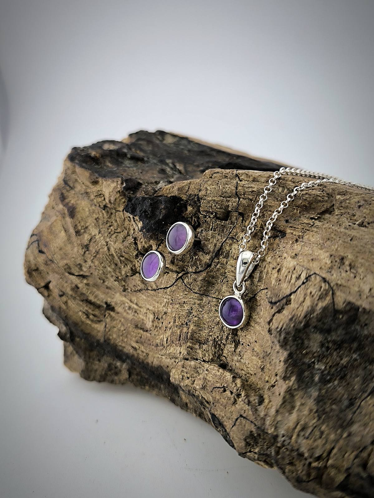Комплект „Lapis“ е изработен от сребро с гладка полирана повърхност. Кръглата форма е прецизно оформена, така че да обгръща камъка и да го фиксира стабилно.