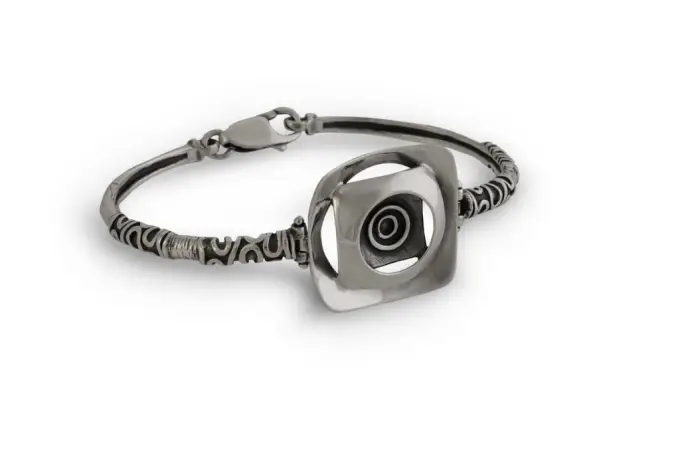 Дамска сребърна гривна тип белезник “ЕНСО” . Бижу с ръчна изработка, авторски модел 1161B на Студио Николас. Nikol@s е изкуствoто, с внимание към всеки детайл. 925 пробa, сребърна красота!