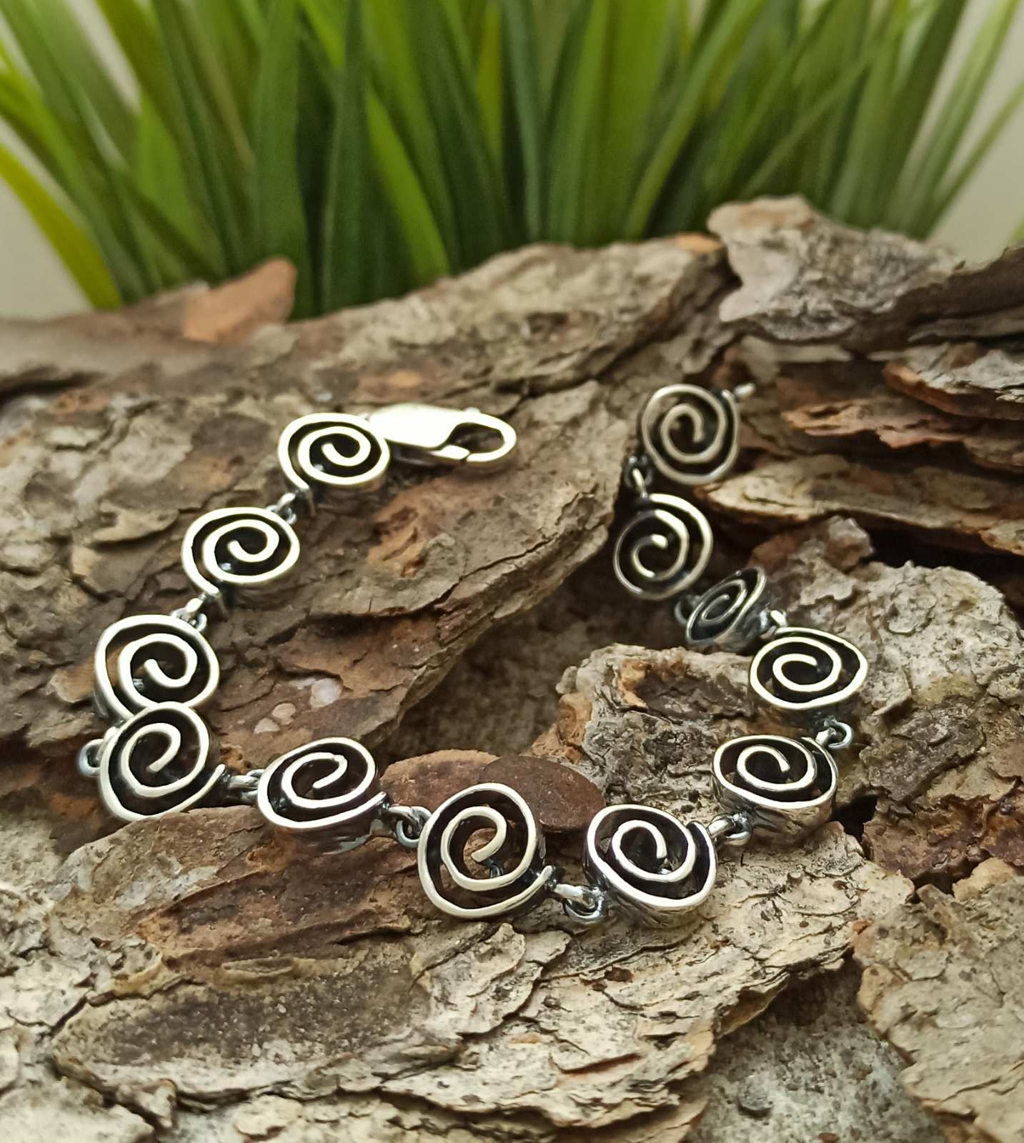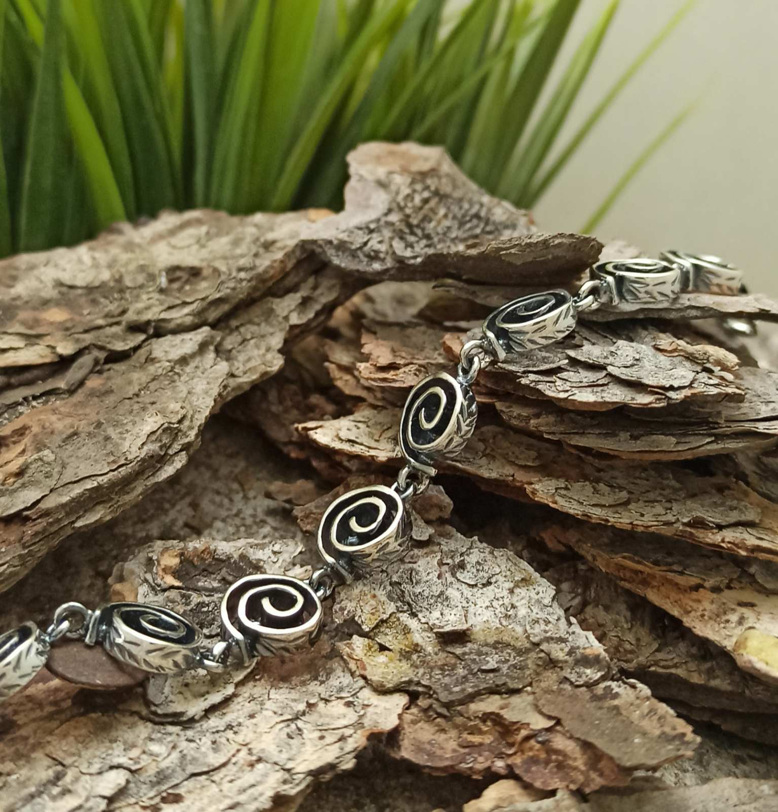 Гривна от сребро с проба 925 съставена от няколко кръгли плочки навита сребърна тел. Nikol@s, с внимание към всеки детайл Ръчна изработка със сертификат за автентичност и маркировка с 925 пробa. Комплект сребърни бижута подарък за Свети Валентин и високосна година.