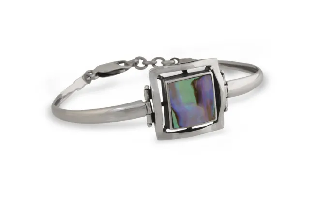 Сребърна гривна с кралски седеф 787B. Дамска сребърна гривна със седеф модел с твърдо рамо и квадратна форма. Прецизна ръчна изработка от сребро с проба 925.