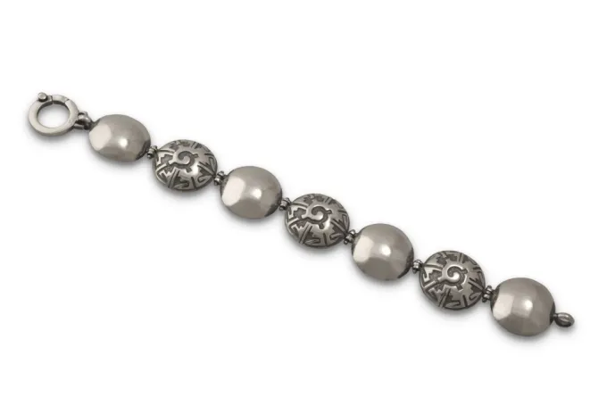 Дамска сребърна гривна с отделни сегменти и прекрасни етно мотиви дизайнерски модел 788b Studio Nikolas. Ръчна изработка сребърна красота!