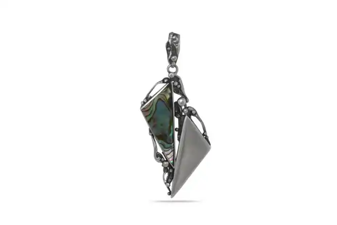 Дамски сребърен медальон с кралски седеф 1125M. Композиция от два триъгълника-единият от кралски седеф, а другият от полирано сребро.