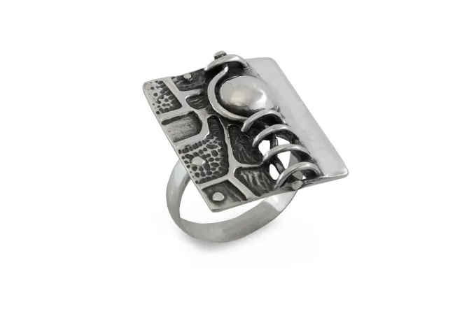 Дамски сребърен пръстен, изчистен модел 1031R на Студио Николас. размери на плочката: дължина – 23мм./ широчина: 19мм.