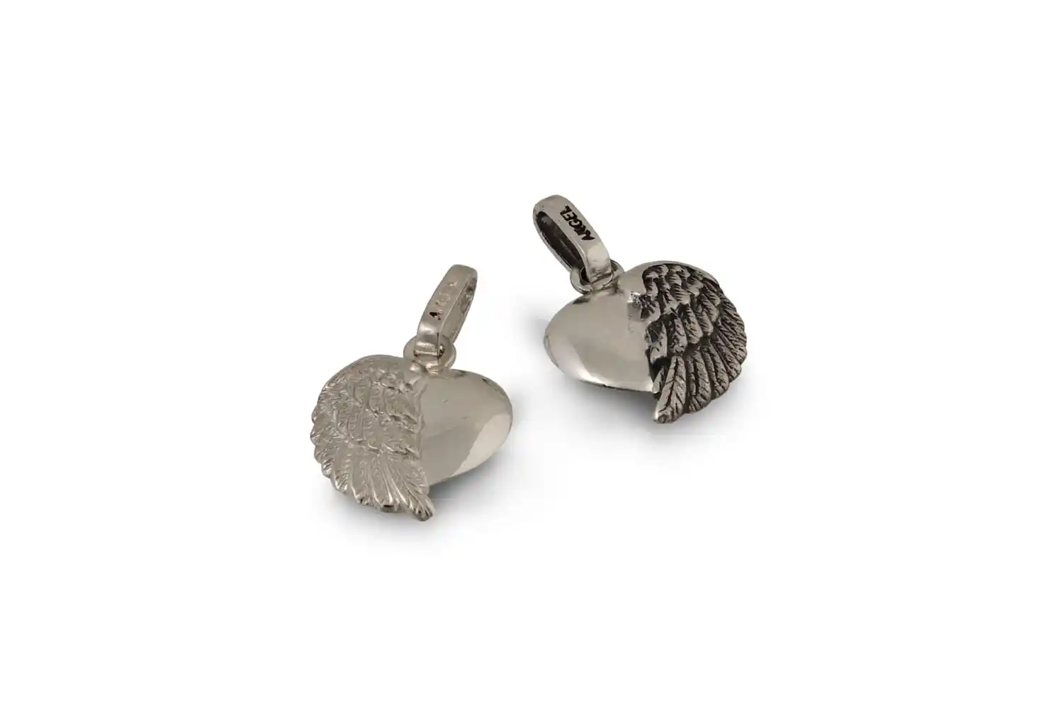 Сребърен медальон „Крила на Ангел“ модел 7AN на сребърни бижута Студио Николас. Nikol@s е изкуствoто, с внимание към всеки детайл. Ръчно изработен талисман, 925 пробa, сребърна красота! Ръчно изработенa висулка във форма на сърце с пера. Перата се използват за направата на различни магически атрибути, амулети срещу зли очи и амулети за привличане на късмет.