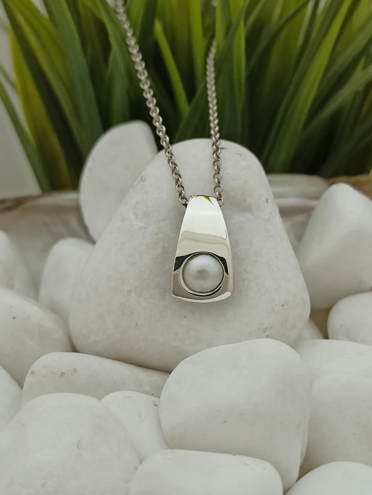 Дамски сребърен медальон с речна перла 1073 M от фабрика за бижута Студио Николас висулка с изчистена форма.