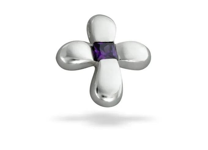 Дамски сребърен кръст с монтиран цирконий 207M. Ръчно изработен дамски медальон във формата на кръст, безупречно полиран и с издута форма! Дамски сребърен кръст с монтиран цирконий 207M от Студио Николас. Български производител на сребърна бижутерия за мъже и жени.