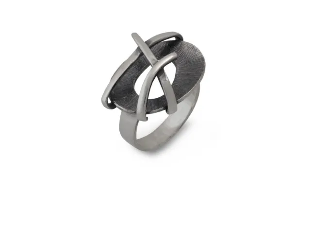 Дамски сребърен пръстен “Абстрактна елипса”. Пръстен от сребровъв формата на елипса допълнен с оксидация. Модел 190R на Студио Николас произведено в България.