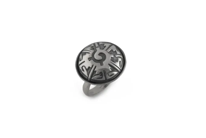 „Красивото за очите, особено ако е и единствено, е скъпо за сърцето….ще се предава от поколение на поколение, като семейна ценност“ . Studio Nikolas е бижутерийно студио, което е специализирано в създаване на дизайн и изработка на бижута от сребро и злато. Студиото е известно със своята модерна естетика и способността си да твори и разработчици на студиото работи в тясно сътрудничество с клиентите, за да разбере техните нужди и цели и след това да използва своя опит, за да създаде уникални и въздействащи модели, които помагат на търговката марка да се открои на пазара. Видовете накитите, коѝто студиото произвежда се делят на обеци, пръстени, гривни и медальони. Като цяло, Studio Nikolas е високо професионален и талантлив екип, който създава визуално послание към света. Дамски сребърен пръстен с етно мотиви.