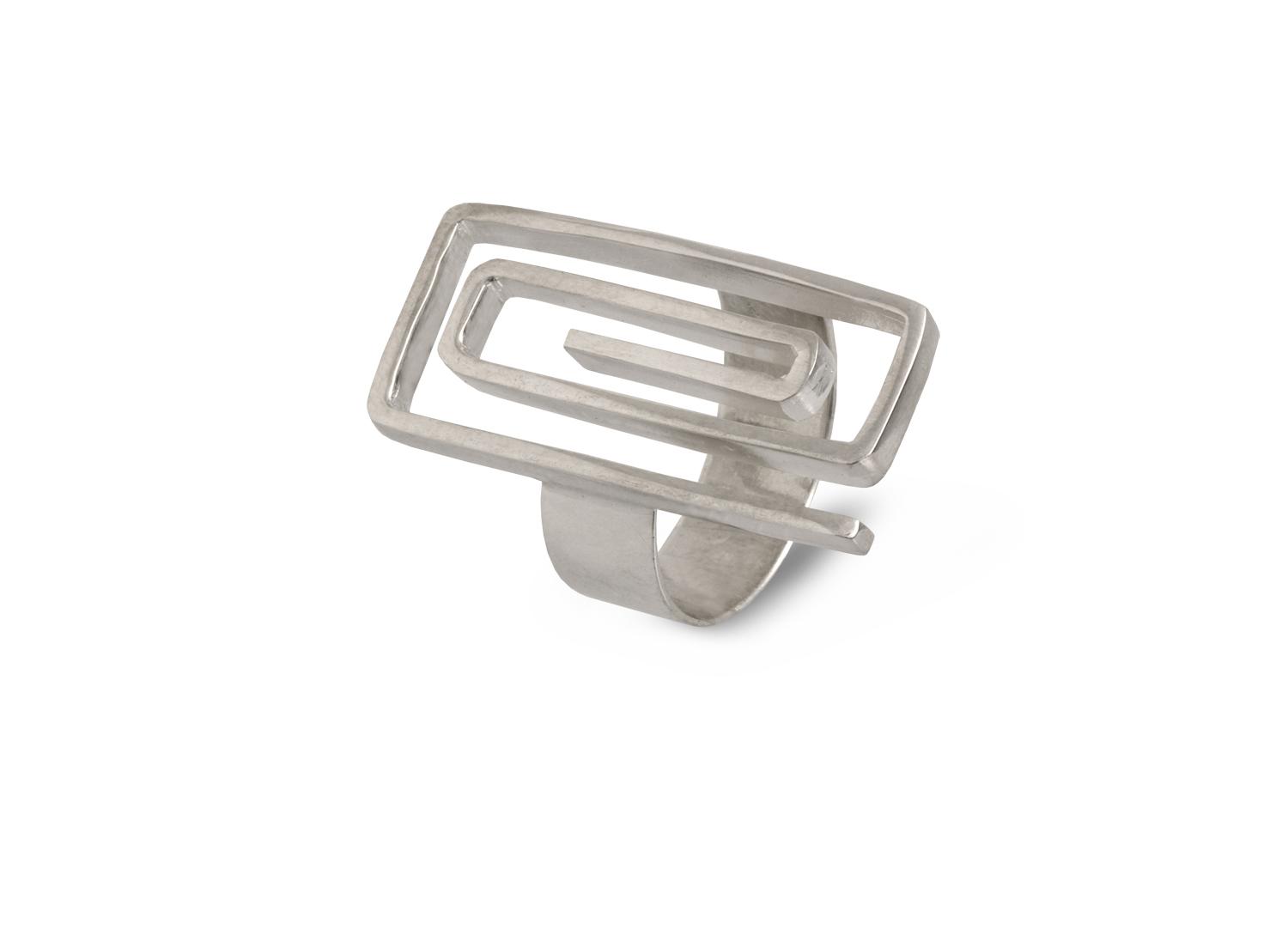 Дамски сребърен пръстен “Кламер” 403R. Ръчно изработен дамски сребърен пръстен “Кламер” от Студио Николас. Български производител на сребърна бижутерия за мъже и жени. Бижута, уникати от сребро с проба 925. Модерен, стилен и прекрасен подарък.