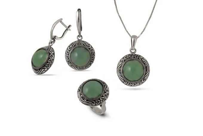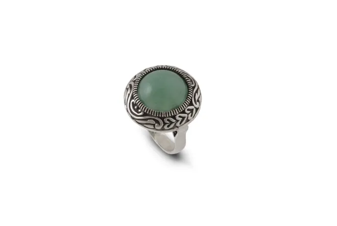 Сребърен пръстен 1218R с кръгла форма и монтиран естествен камък авантюрин. Пръстен изработен от сребро с проба 925 Студио Николас – сребърна бижутерия за жени и мъже! Изберете камъните за Вашето Бижу.