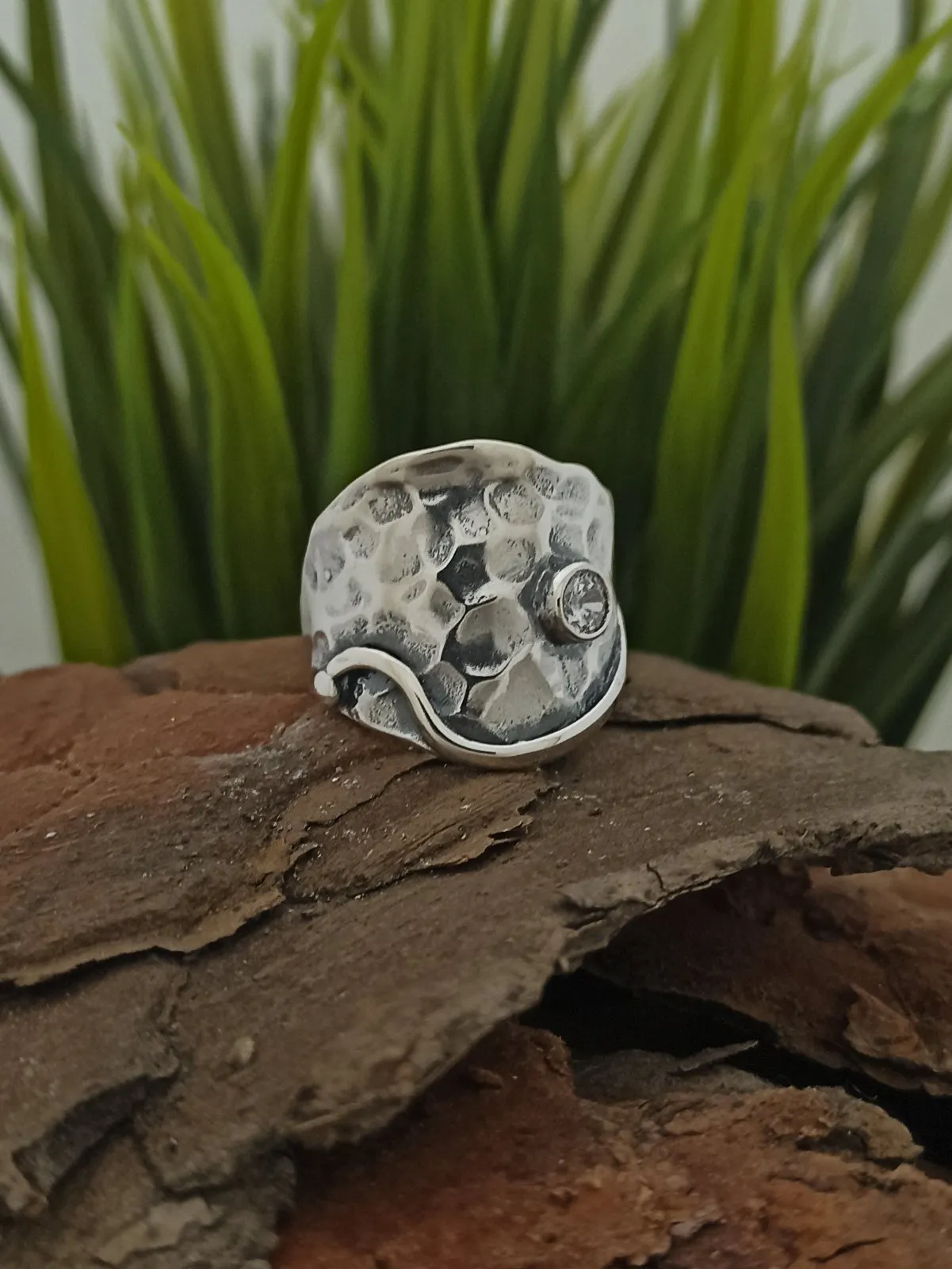 Сребърен пръстен с циркон “Шушулка”. Дамски модел на сребърен пръстен с циркон 916R Студио Николас. Комплект “Шушулка” – пръстен, обици и висулка от сребро 925. Nikol@s е изкуствoто, с внимание към всеки детайл.Ръчна изработка, 925 пробa, сребърна  красота!