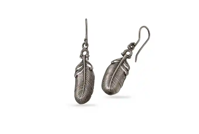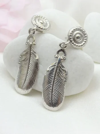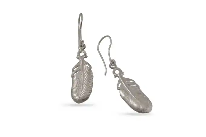“ANGEL C@LLER” by Nikol@s – Дамски сребърни обеци с пера, ръчно изработен модел 16A от Николас от сребро проба 925 с родиево покритие.
