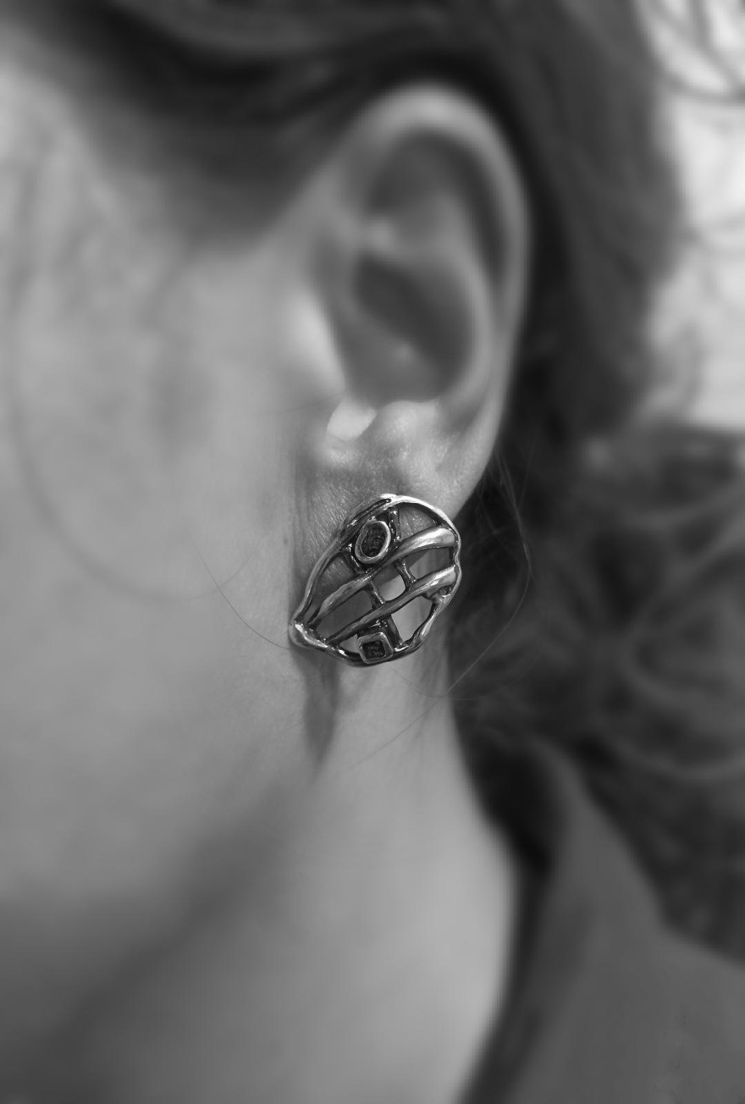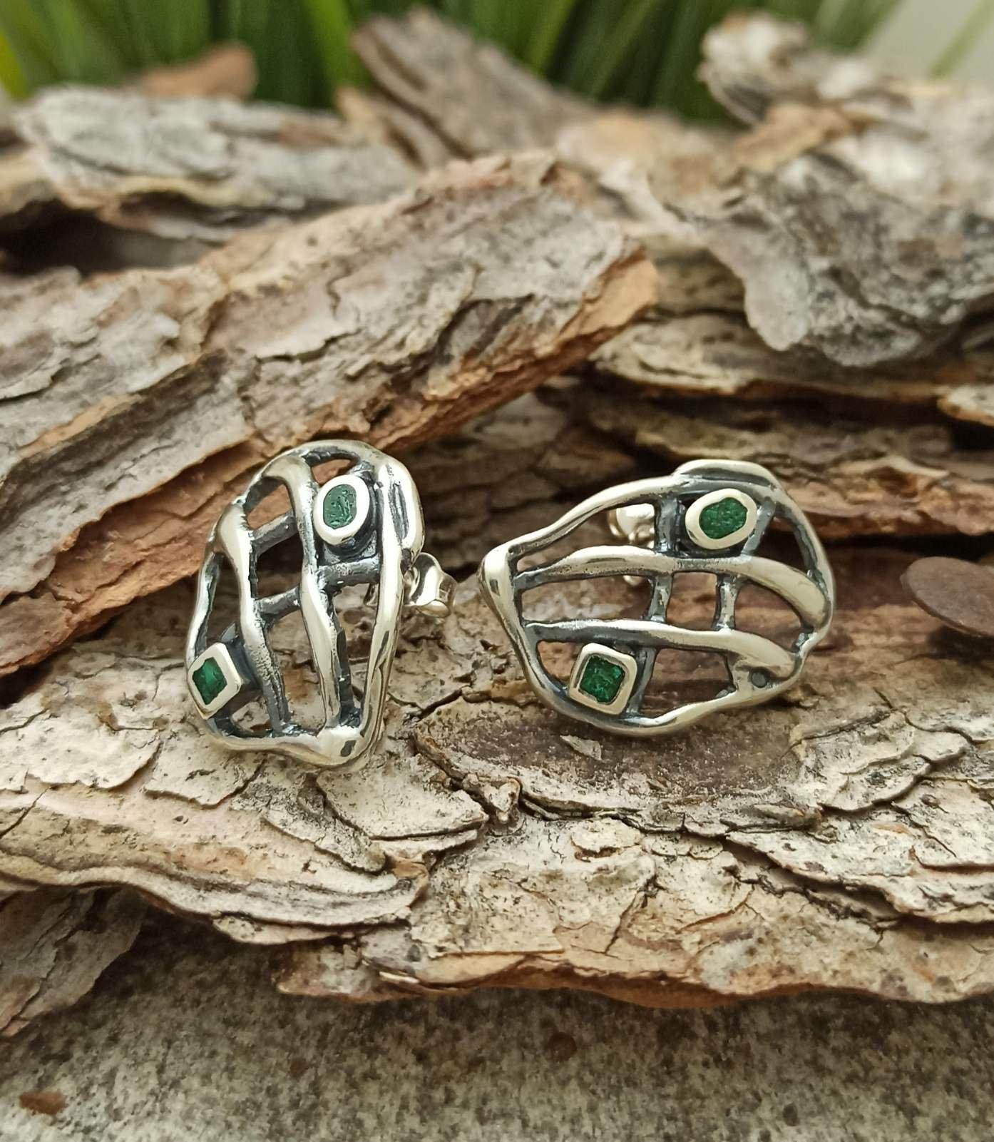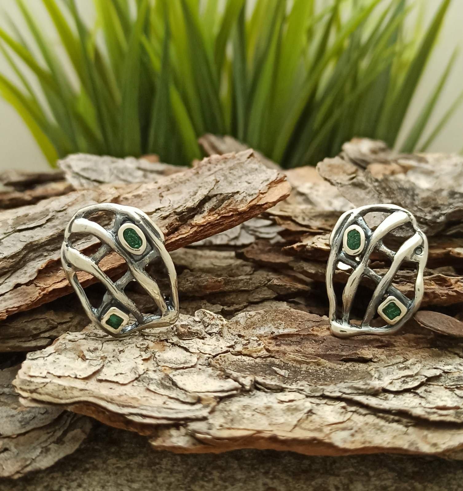 Сребърни обеци с ажури и емайл, закопчаване на щифт/тип пеперуда сребро със сребърна проба 925 Ag Дизайнерски модел 873E на Студио Николас. тегло: 6 gr.
