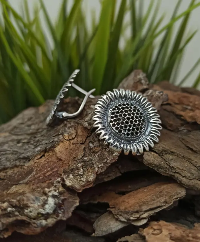 Дамски сребърни обеци “СЛЪНЧОГЛЕД”.