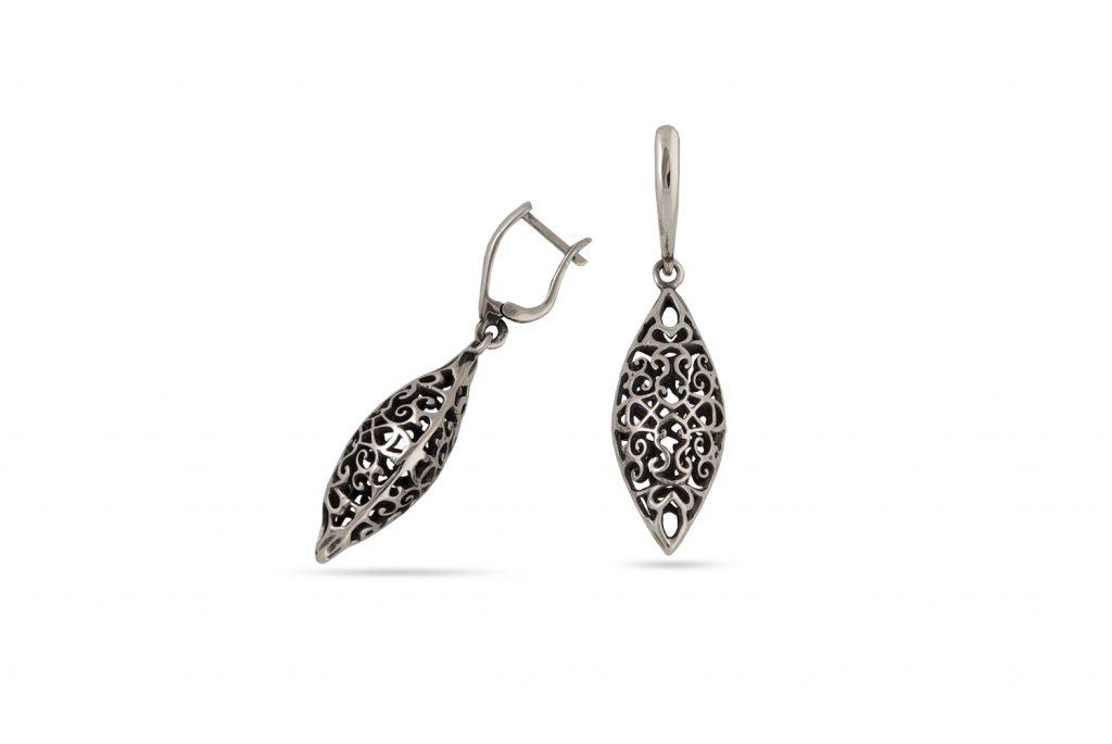Дамски сребърни обеци 1212E – висящи и масивни ажурени обици от сребро с проба 925.