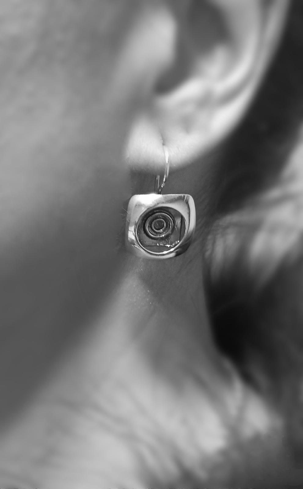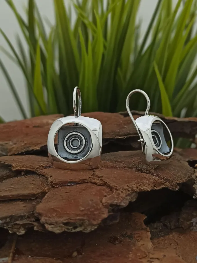 Дамски сребърни обеци на върбило 1159EV с изчистена квадратна форма, ръчна изработка от Студио Николас.