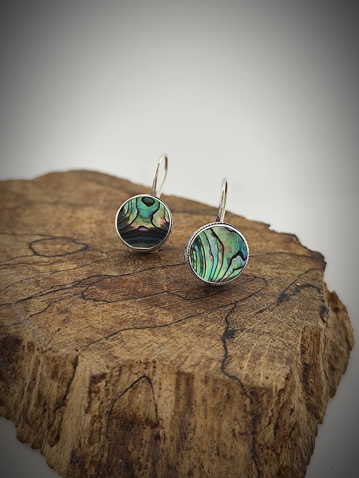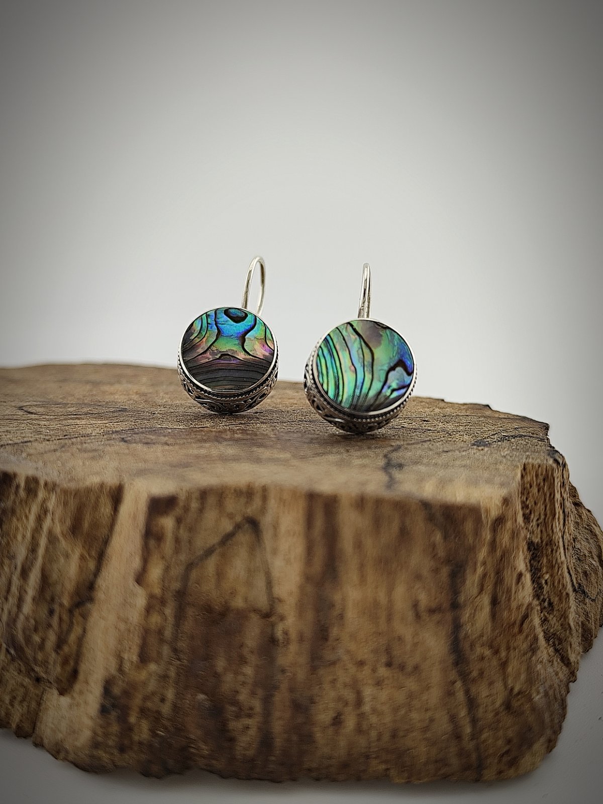 Сребърни обеци „Седефена магия“ са вдъхновени от вечната красота на морето и неговата мистична дълбочина. Седефът – с неговите деликатни преливки – символизира хармония, защита и чистота. Белият седеф носи усещане за нежност и класическа елегантност, докато кралският седеф впечатлява с изразителни сини и зелени нюанси, напомнящи на океанска повърхност.
