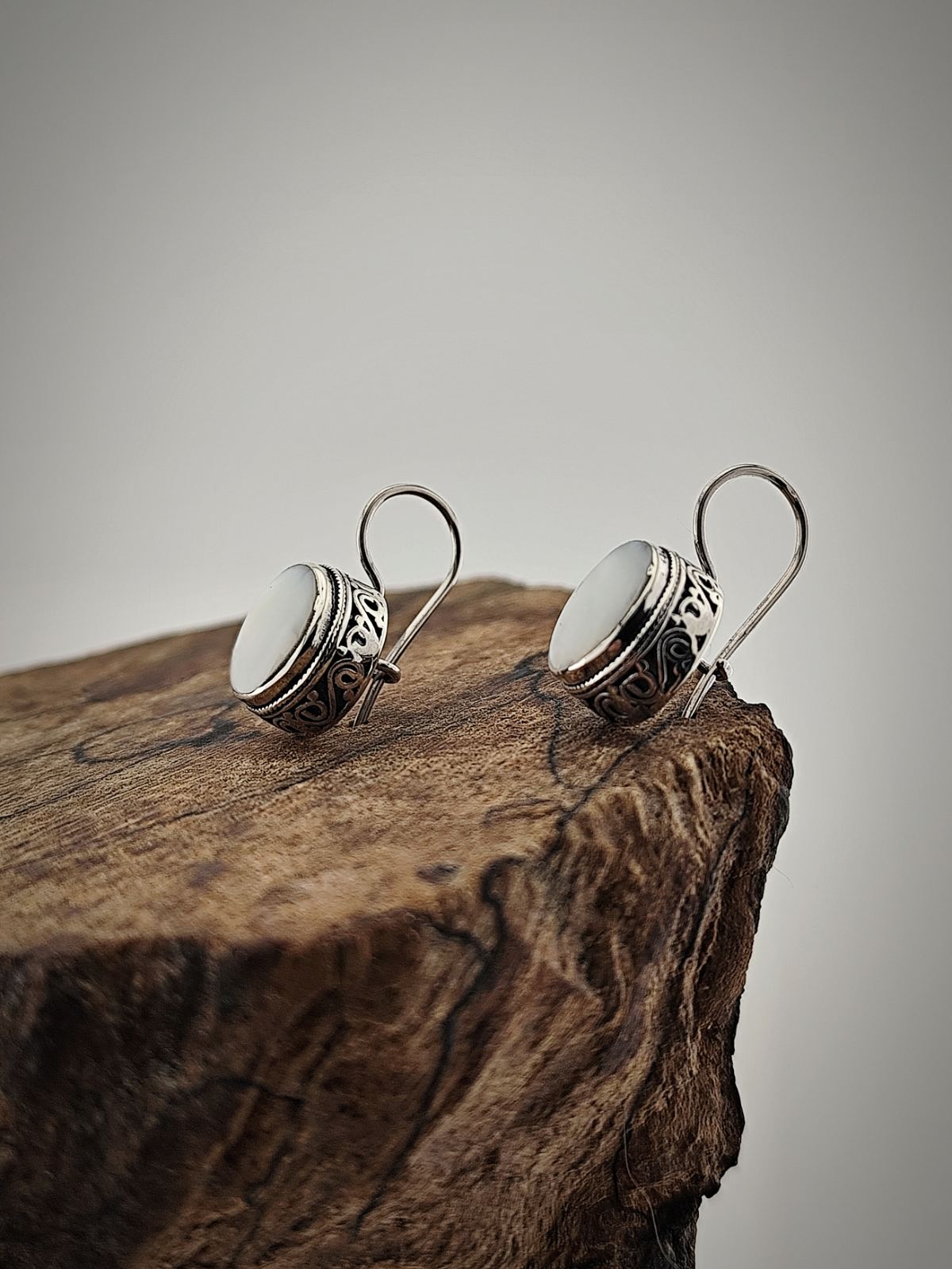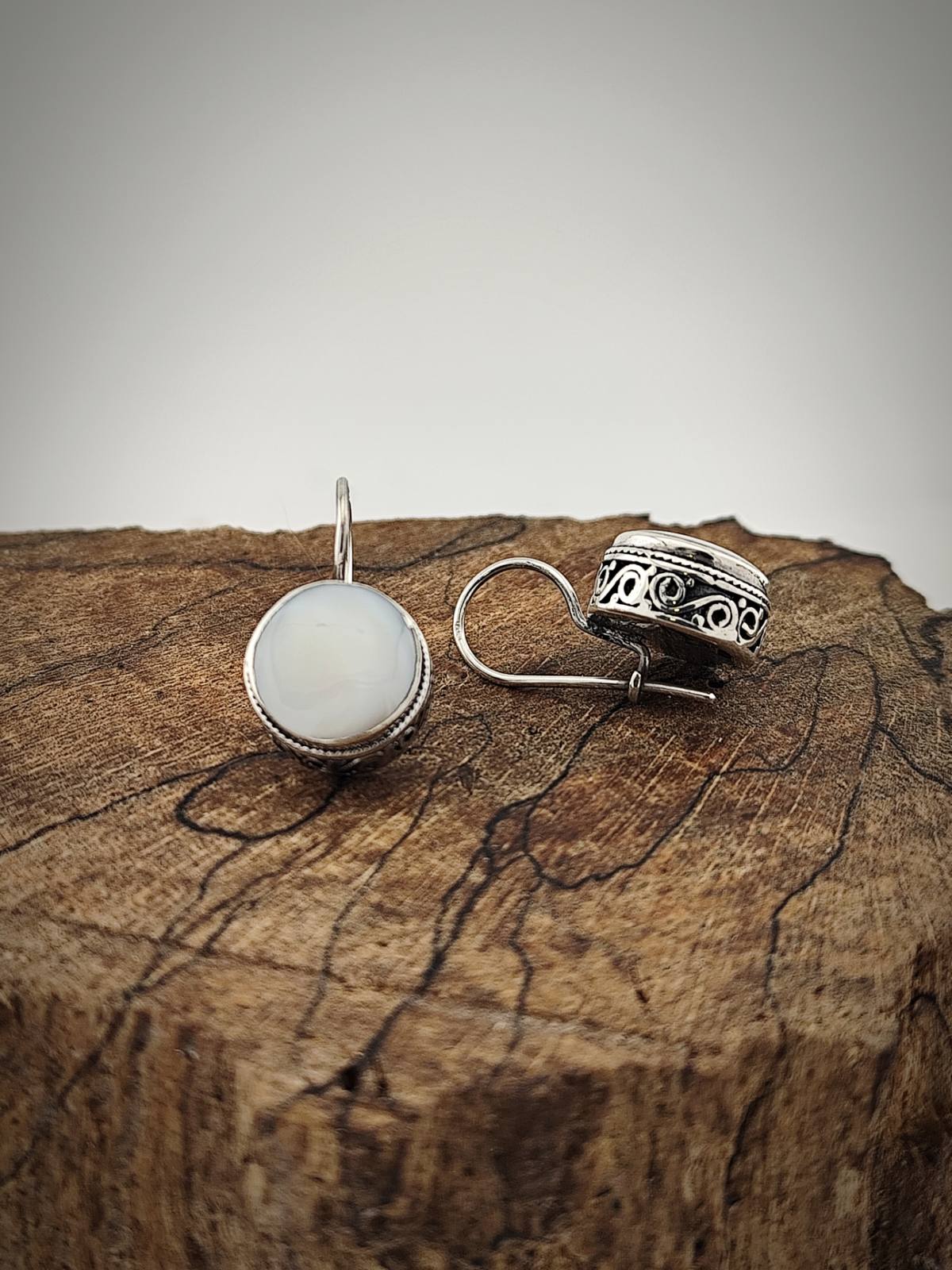 Елегантни дамски обеци от сребро 925 със седеф – избор между класически бял или кралски седеф. С руско закопчаване за сигурност и комфорт.