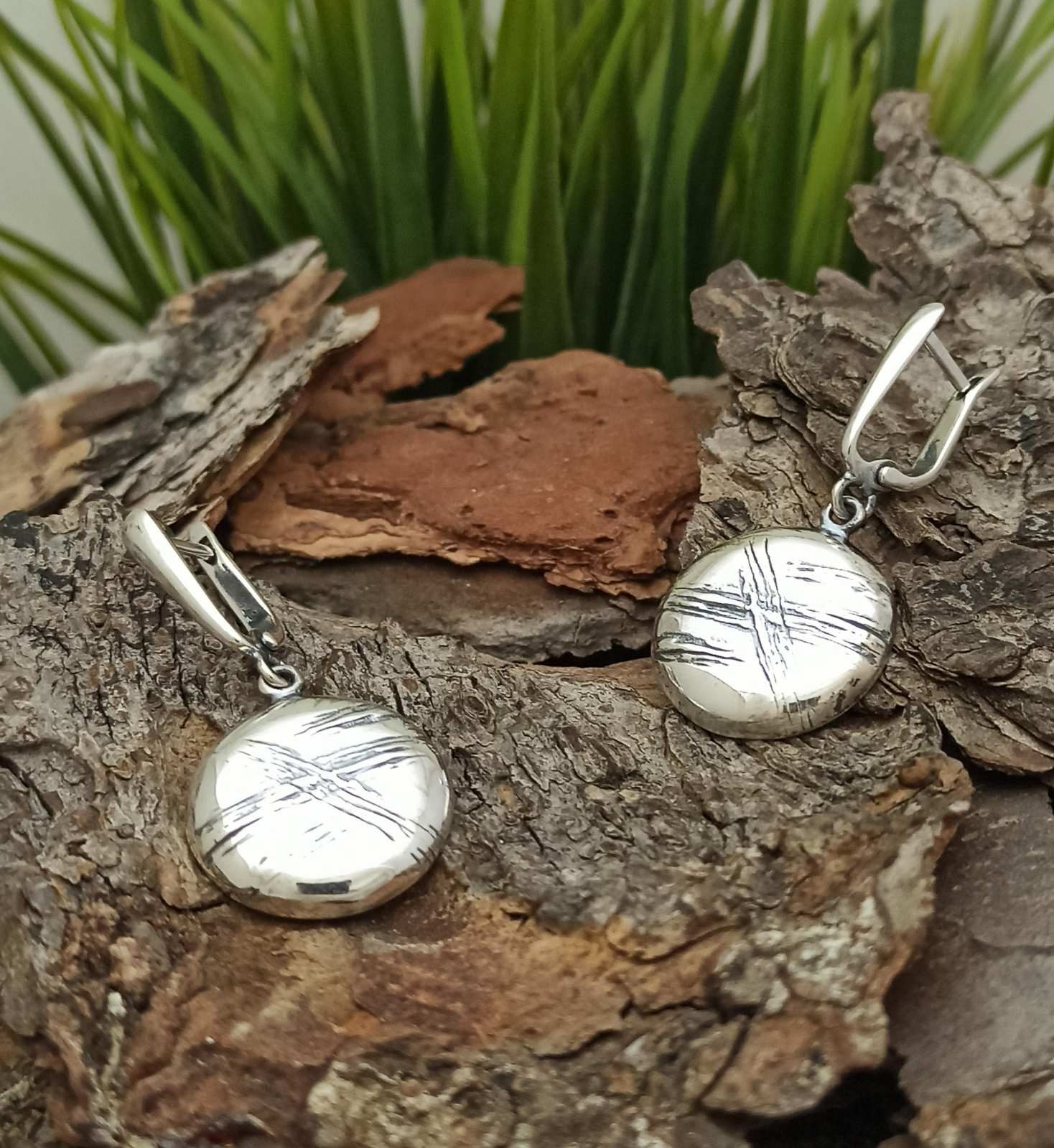 Обеци от стерлингово сребро проба 925. Дамски сребърни обеци от стерлингово сребро с проба 925 и прецизна ръчна изработка. Обеци от сребро с английско закопчаване в кръгла форма с оксидация за да се подчерае елемента. Фабрика за сребърна бижутерия – Студио Николас.