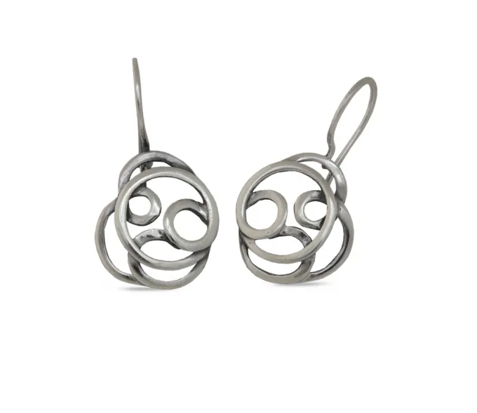 Дамски сребърни обеци “Люляк”. Модел 973E от каталога на Студио Николас. Стилен дизайн с преплетени кръгове, подходящ аксесоар за всеки ден.