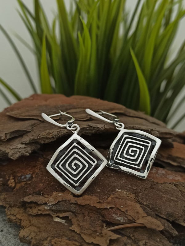 Сребърни обеци „СПИРАЛА” – Символ на живот и енергия, свързван също с изобилие и успех ! Изчистен модел обеци с английско закопчаване, ръчно произведени във фабрика за сребърна бижутерия – Студио Николас, България, Габрово!