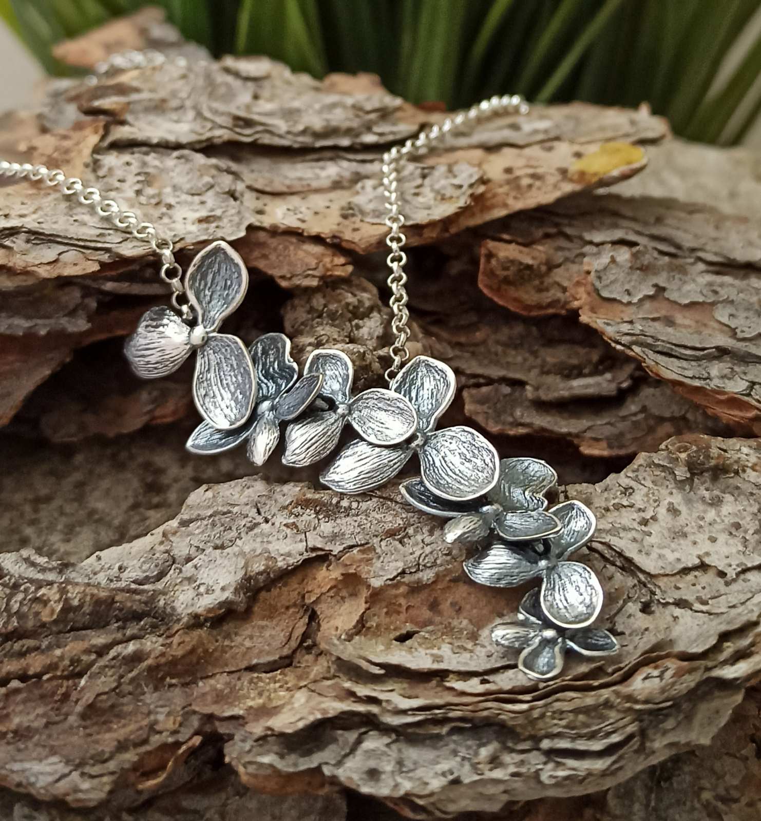Колие с нежното цвете ЛИЛИЯ. Дамско сребърно колие с нежното цвете ЛИЛИЯ. Моделът е дизайнерско бижу, произведено от висококачествено сребро 925 с авторският почерк на ювелирите от Студио Николас.