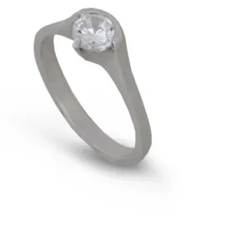 Сребърен пръстен с бял цирконий 046R. Сребърен пръстен с единичен кубичен циркон. Изчистен стилен красив модел пръстен от сребро с циркони от сребърни бижута Студио Николас. Бижу с проба 925 на среброто и прецизна ръчна изработка. Пръстен тип халка с монтиран кръгъл камък в средата.