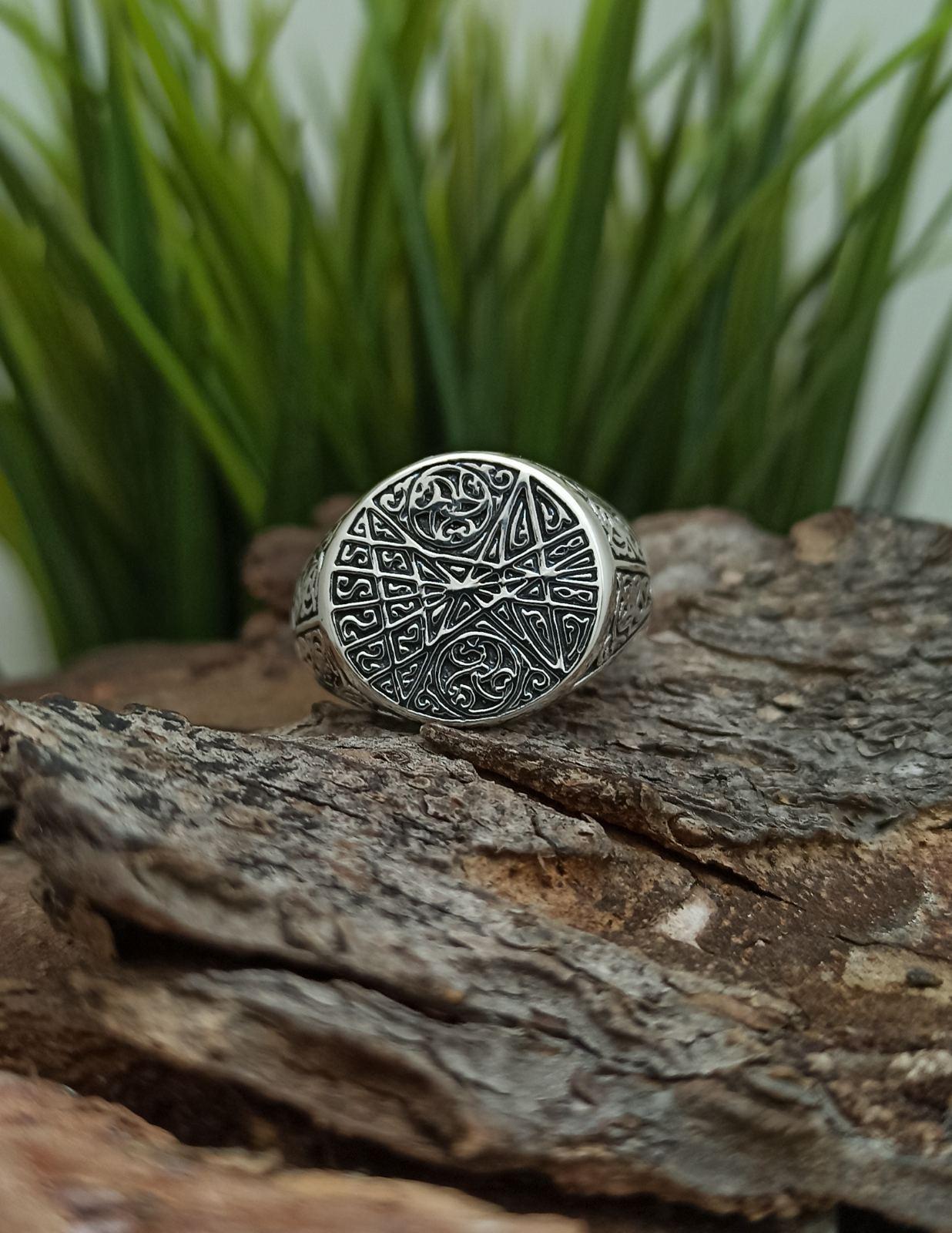 Мъжки сребърен пръстен в готик стил. Каталожен номер 1294R на Студио Николас. Моделът е за тези, които не се страхуват да бъдат в центъра на вниманието!