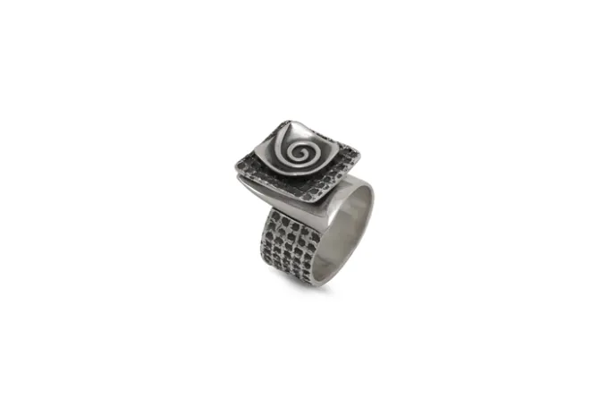 Дамски сребърен пръстен 1313R Студио Николас. Част от комплект бижута, който съдържа: пръстен, обеци и медальон от Сребро проба 925! широчина на елемента: 20 мм / широчина на халката: 11 мм.