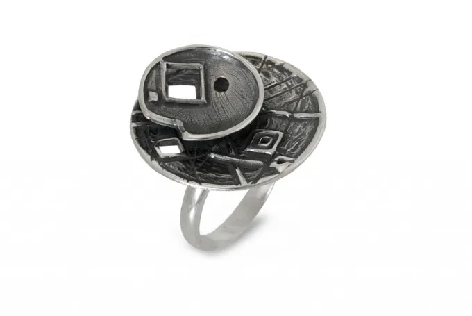 Дамски сребърен пръстен 1034R Студио Николас. Кръгъл сребърен пръстен с елегантен дизайн от стърлингово сребро с проба 925 ,част от комплект сребърни бижута: обеци, пръстен и медальон.