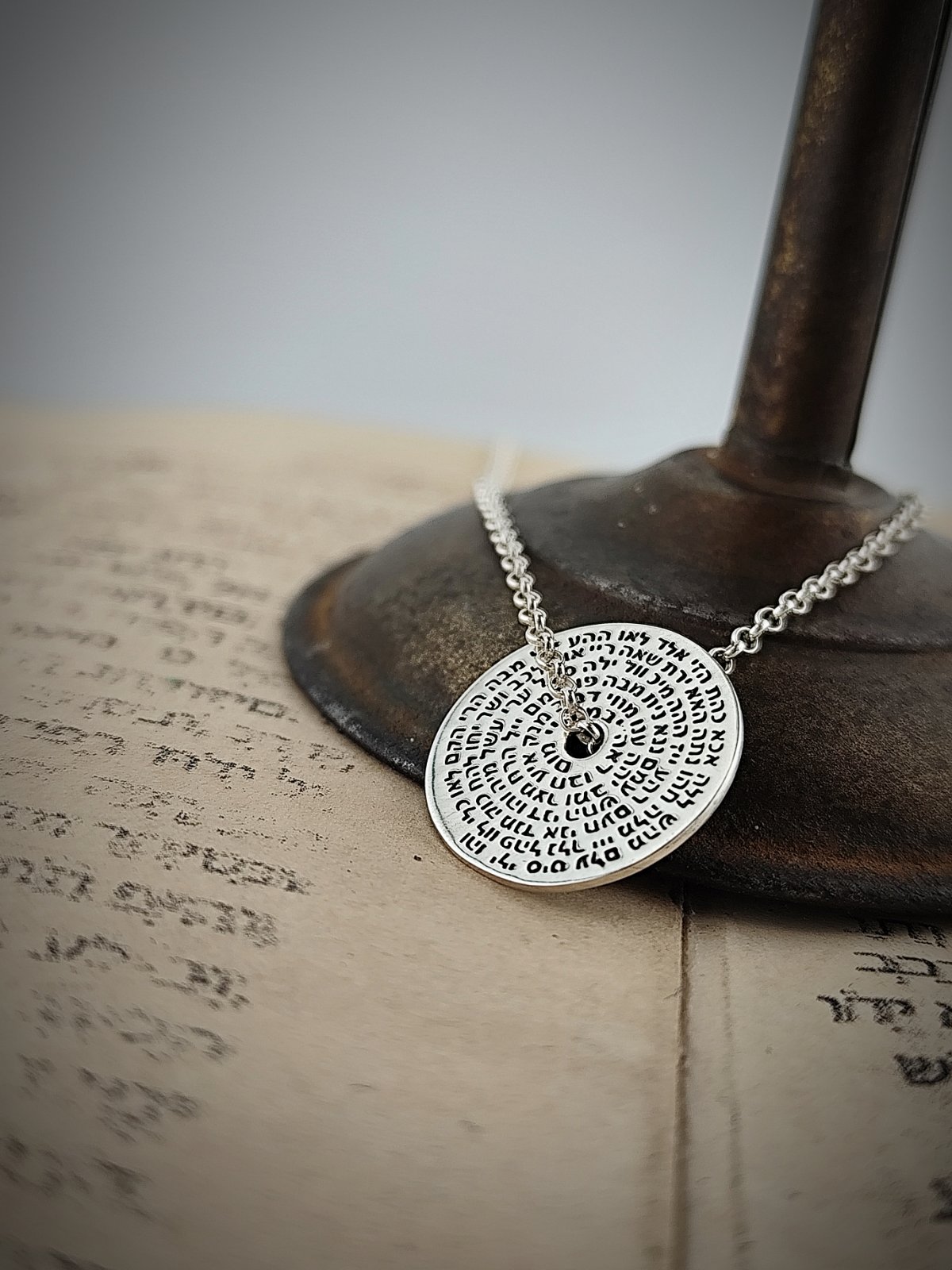 KABBALAH* сребърно колие “Колело с 72-те Имена на Бог”, унисекс пендатив- амулет-талисман, създаден от ювелирите във фабрика Студио Николас! Ръчно изработен амулет от истинско стърглингово сребро с маркировка 925. Върху повърхността му могат да се прочетат всичките имена на Годпод Бог, които са спираловидно гравирани, за да подкрепят всеки, който иска да постигне физически или духовен мир. Свързва ни с източника на енергия, който ни помага да се справяме с ежедневния натиск.