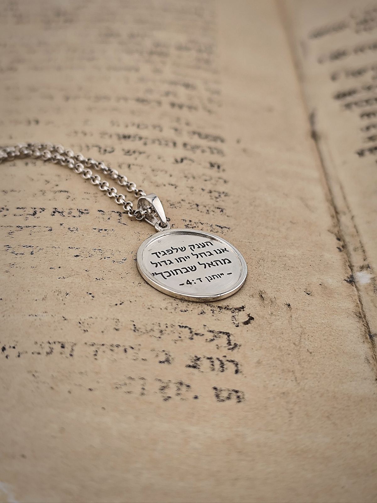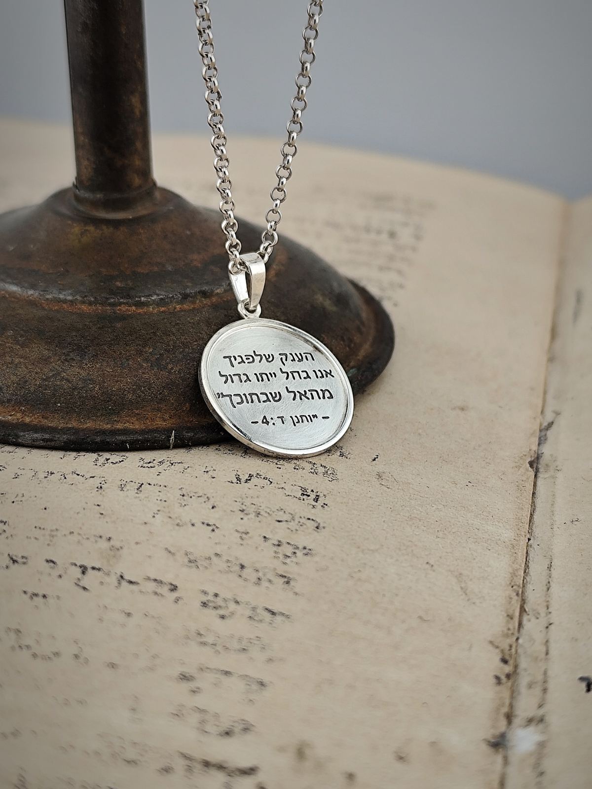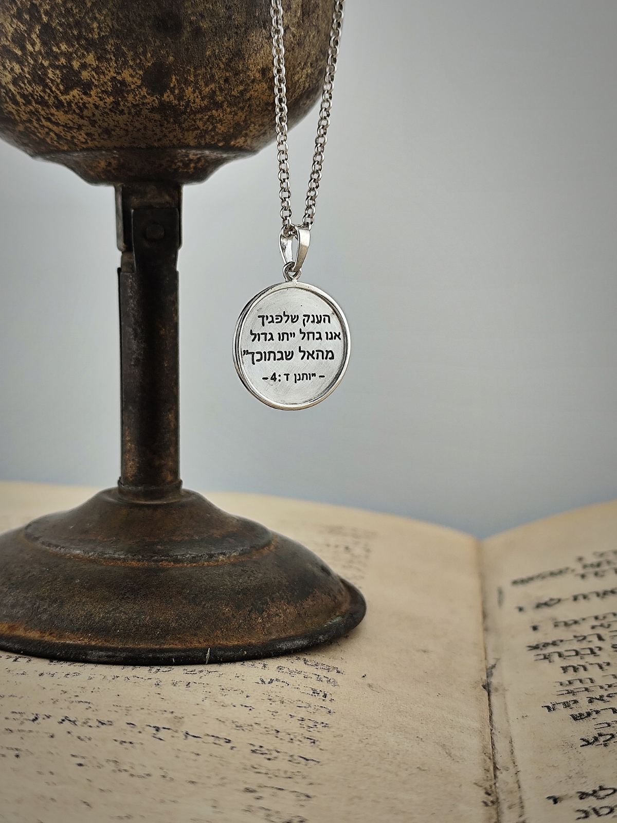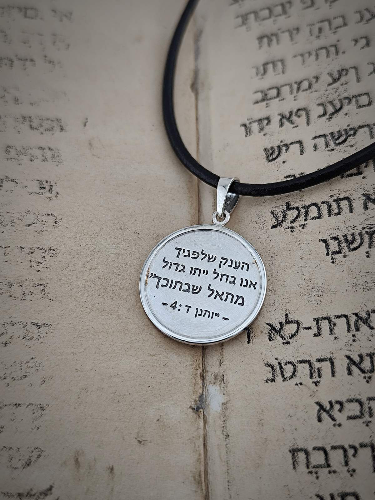 В центъра на този медальон е гравиран текст на иврит: