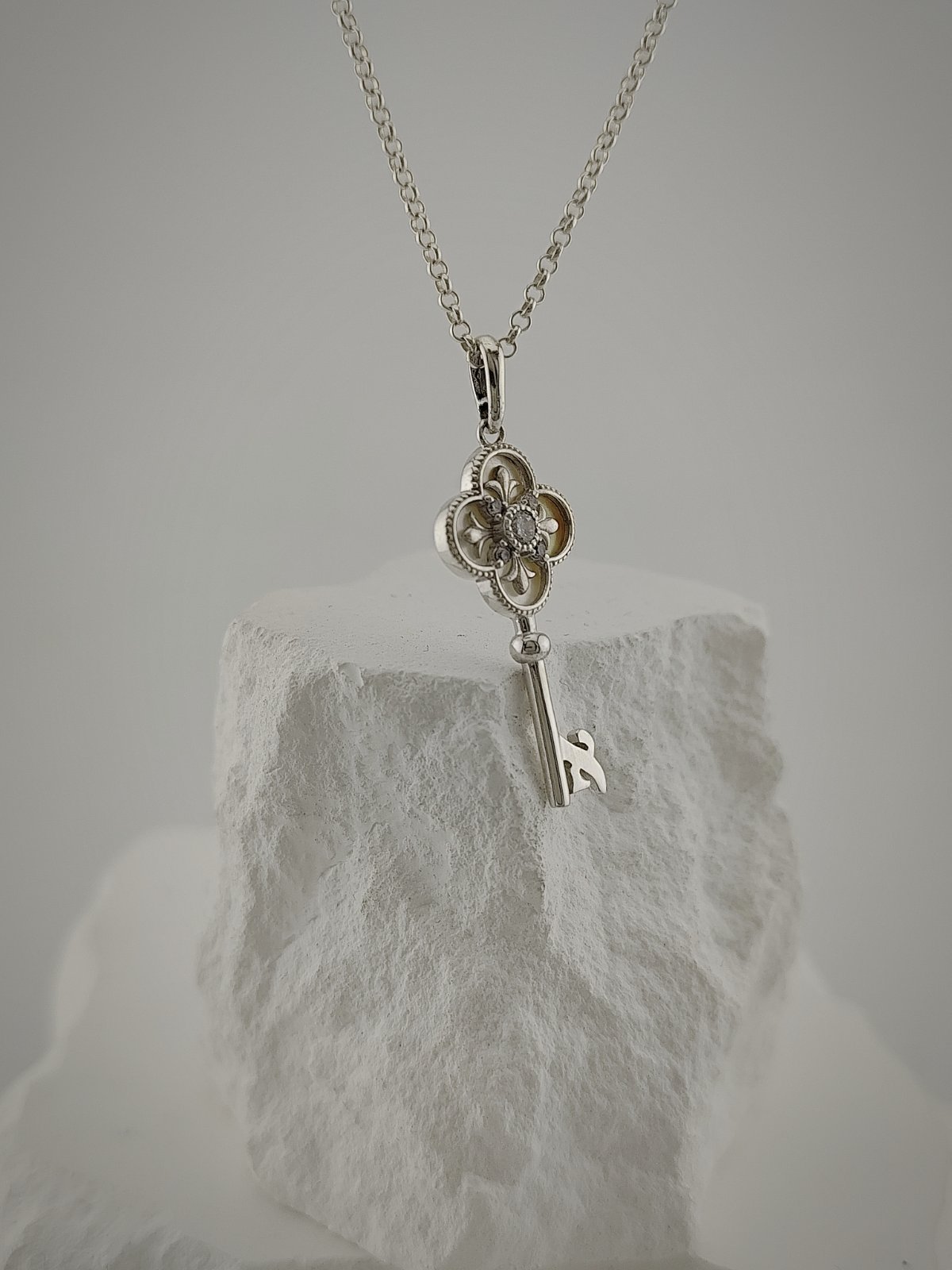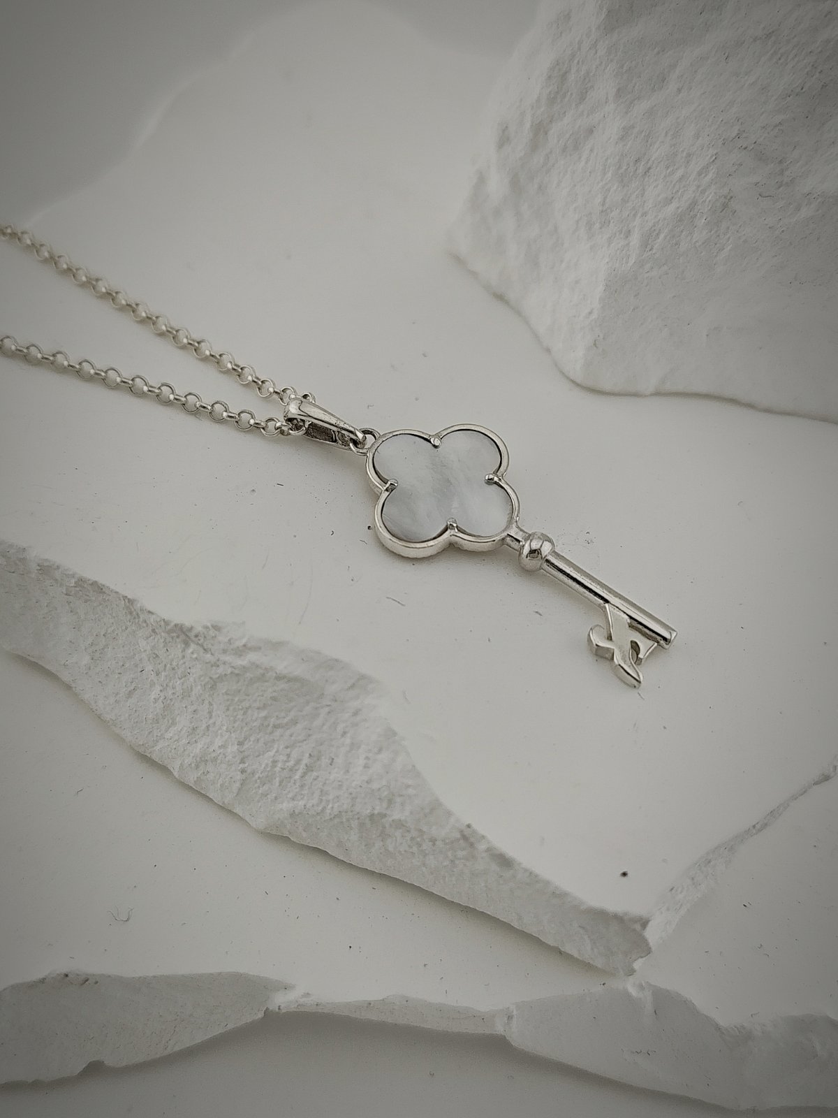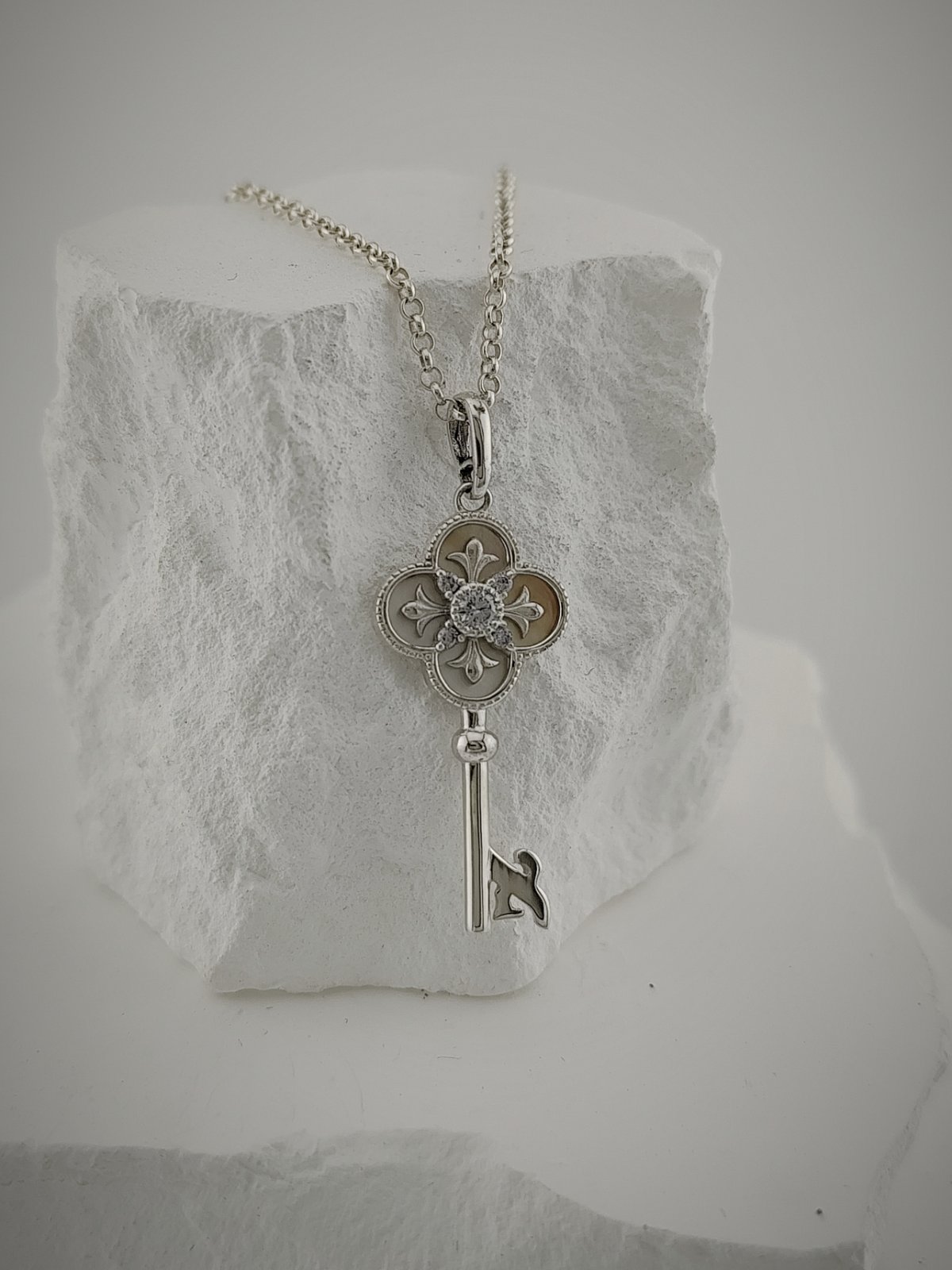 Формата на ключа е изпълнена с естествен бял седеф, чийто мек блясък напомня за светлина, която не идва отвън, а се ражда отвътре.