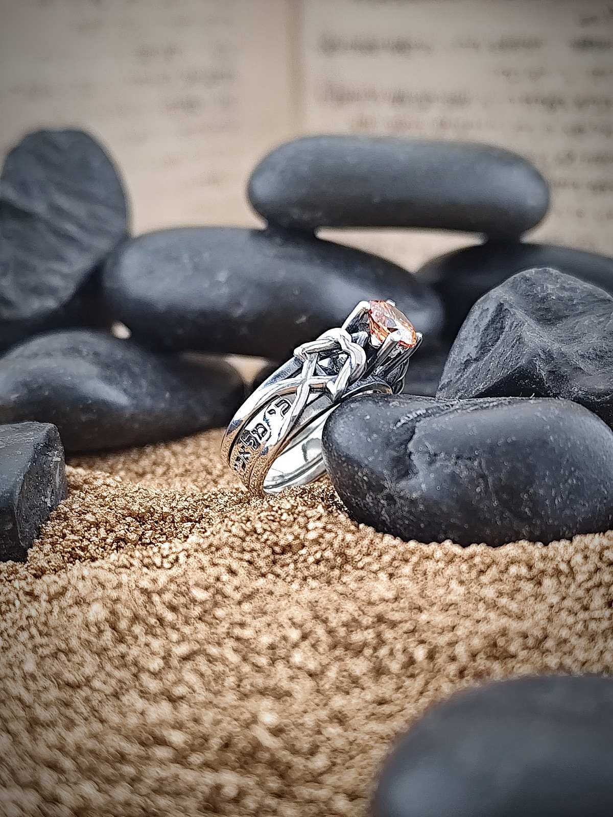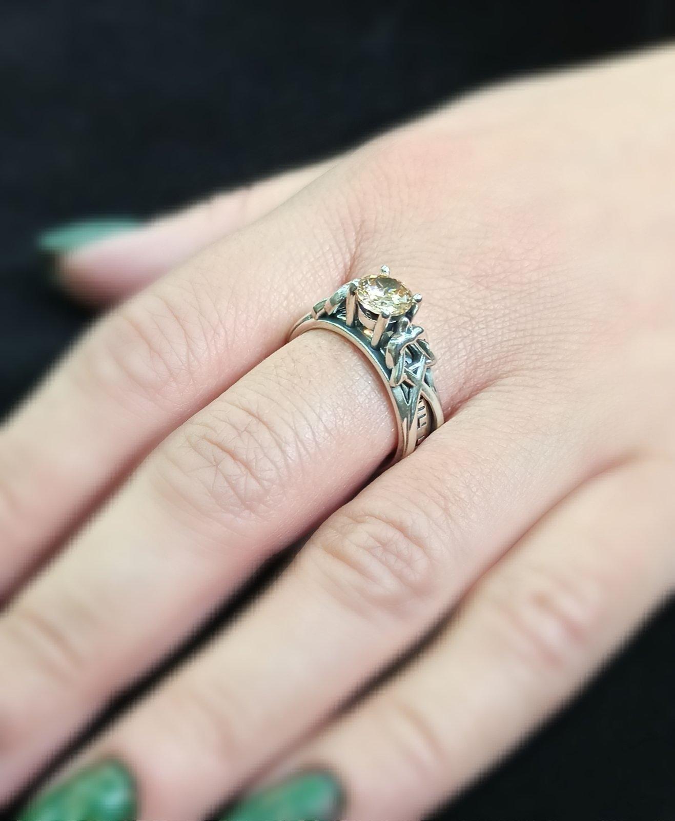 широчина на халката: 7мм./ размер на камък с цвят шампанско: 6мм./ приблизително тегло: 6 грама