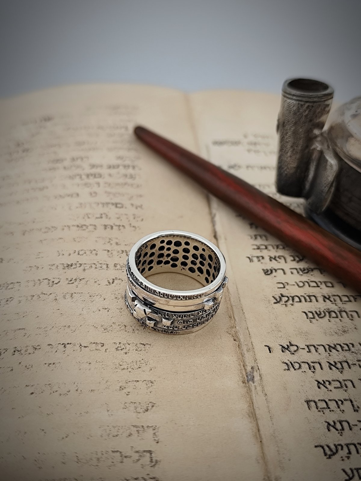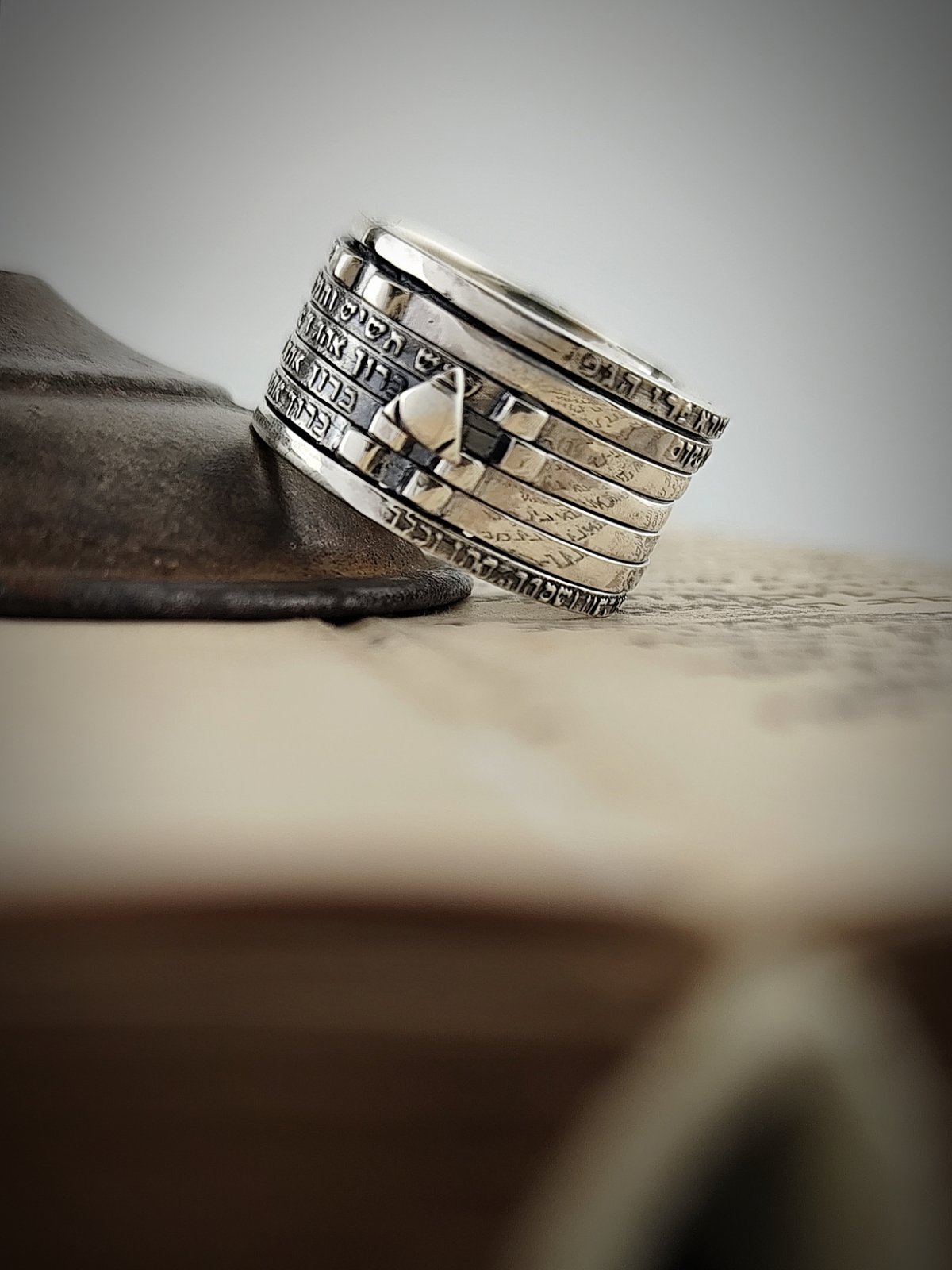 Кабала пръстен от сребро СЕДЕМТЕ МОЛИТВЕНИ ДНИ. KABBALAH* сребърен пръстен СЕДЕМТЕ МОЛИТВЕНИ ДНИ, мощен KABBALAH * амулет от Студио Николас. Бижуто е символ на свещения съюз между мъжа и жената. Носенето му увеличава взаимното притегляне, усилва съпружеската връзка и плодовитостта на двойката.