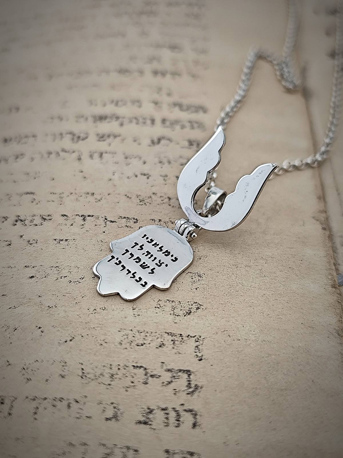 Във вътрешната част на медальона е скрита “Ръката на Фатима” или позната още като “ХАМСА” е лесен за разпознаване символ, тъй като дизайнът му е с форма на човешка длан. Този символ датира от стотици години и се смята, че притежава защитни сили. Ръката е гравиран е текста от стихове 11-12. „защото ще заповяда на Ангелите Си за тебе, да те опазват във всички твои пътища.: ще те понесат на ръце, да се не спънеш о камък с ногата си“.