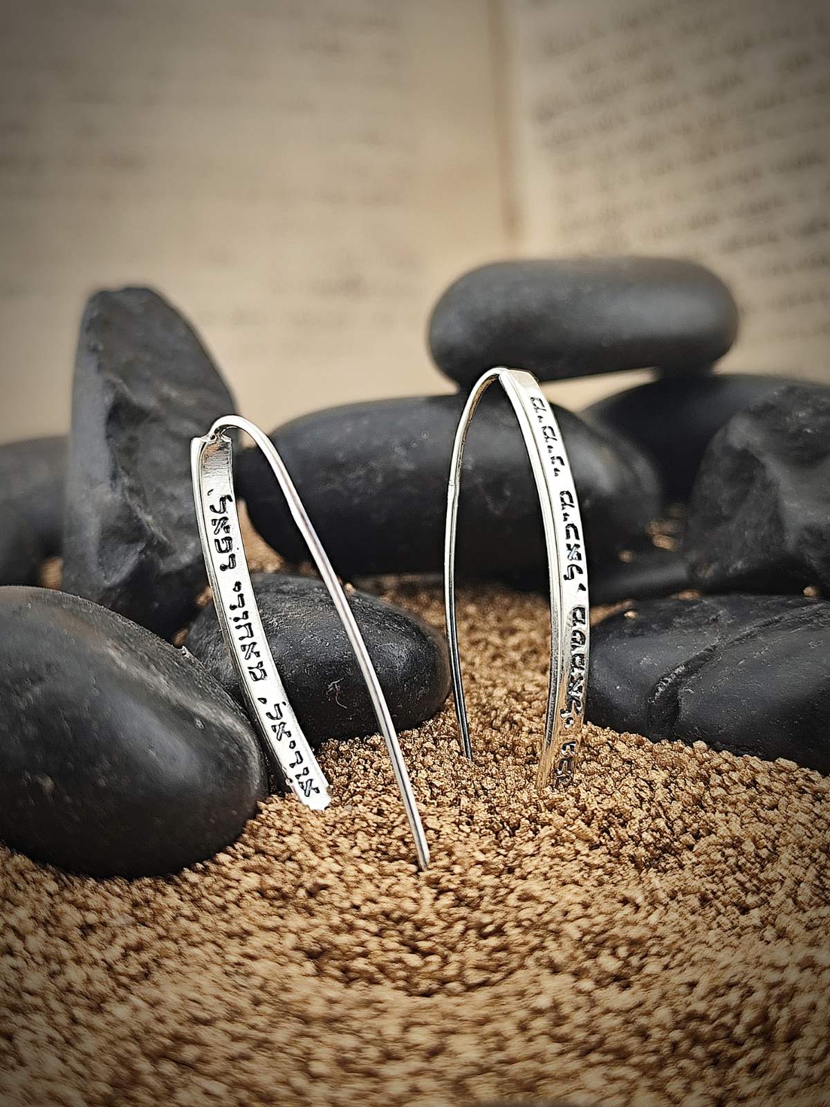 Кабала сребърни обеци Ангелска молитва. Обеци от сребро с кабалистичен текст на цялата Ангелска МОЛИТВА: