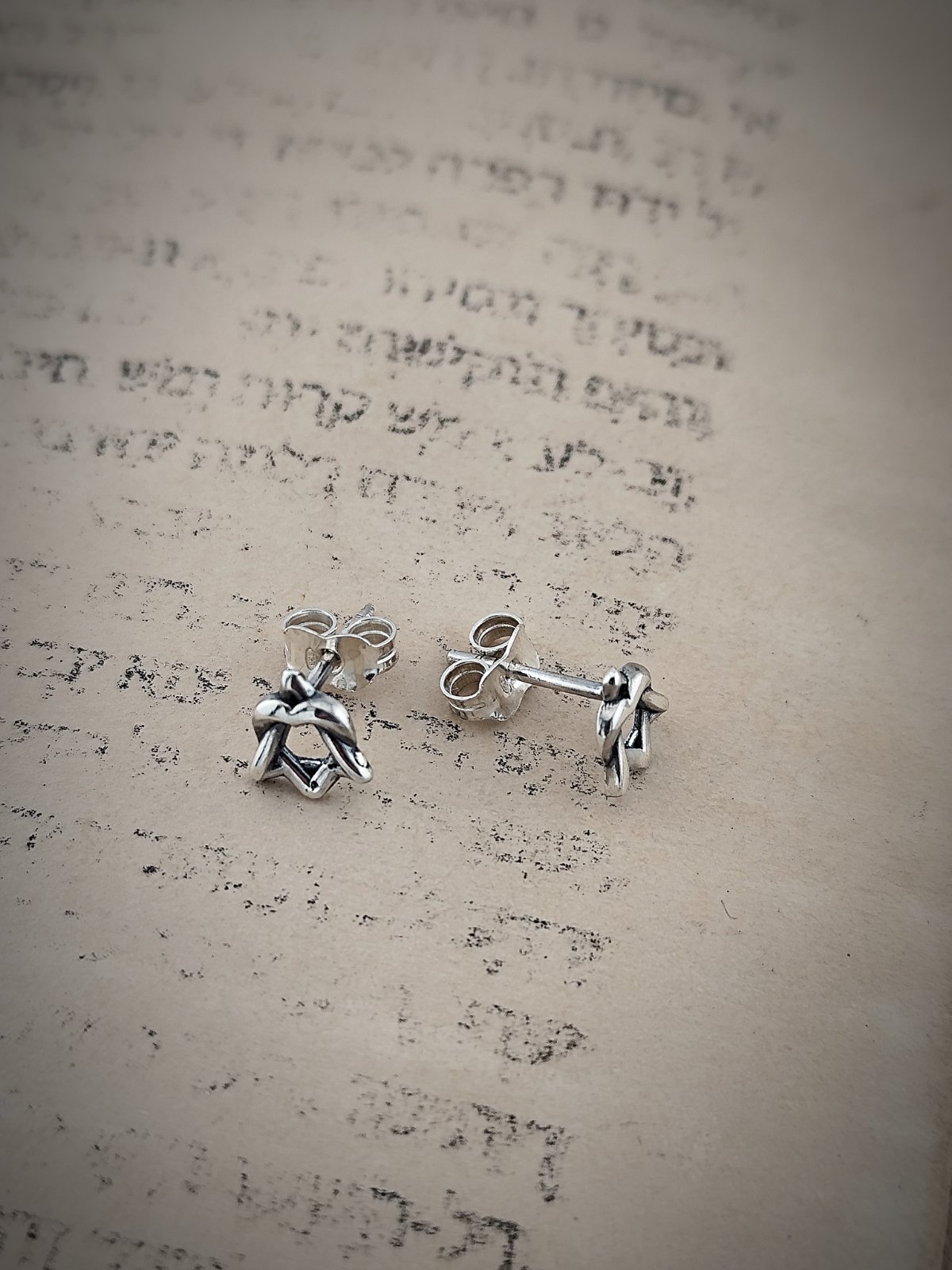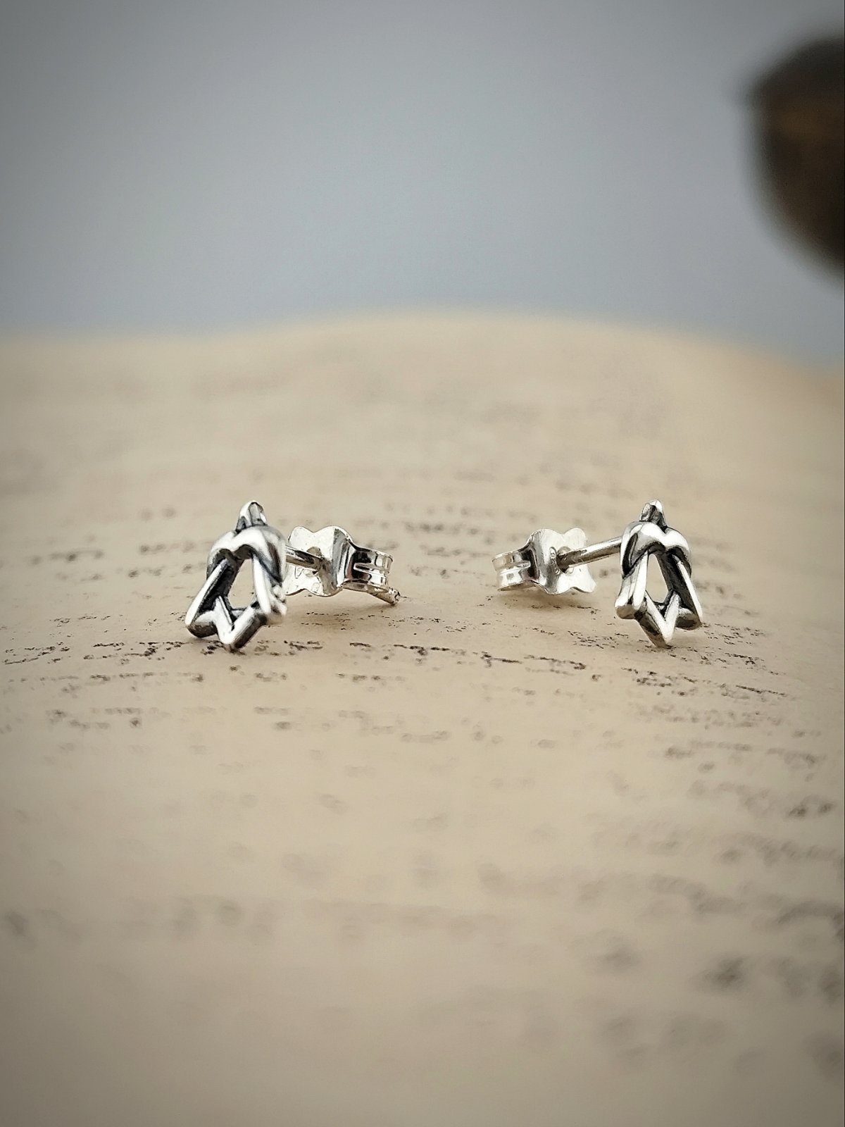 Сребърени обеци МАГЕН ДАВИД – „ЗВЕЗДАТА НА ДАВИД“ със сърце и закопчаване на щифт. Изработени са от 925 стерлингово сребро и представляват един от най-популярните символи на юдаизма, кръстен на цар Давид от Древен Израел. Приблизително тегло: 1 гр. Размери: ш.: 7,5мм./д:8,5мм./каталожен номер: 1560E.