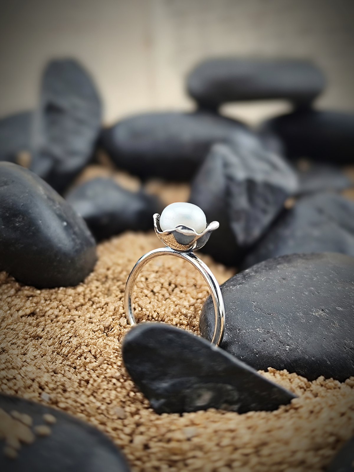 Kabalah* сребърният пръстен с перла е създаден като деликатно и смислено бижу, което съчетава минималистичен дизайн с духовна дълбочина. Моделът използва същия символичен елемент, познат от кабала медальона с перла, адаптиран в по-нежна и ежедневна форма – пръстен, който може да се носи постоянно като личен амулет.