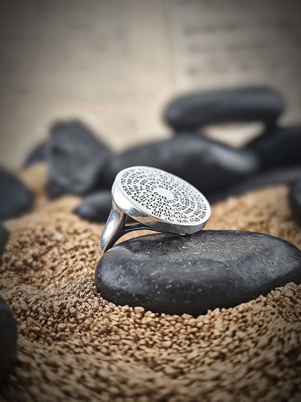 Kabbalah* сребърен пръстен . Кабалистичен сребърен пръстен “Колело с 72-те Имена на Бог”, ръчно създаден от стърлингово сребро 925 надписано на иврит.