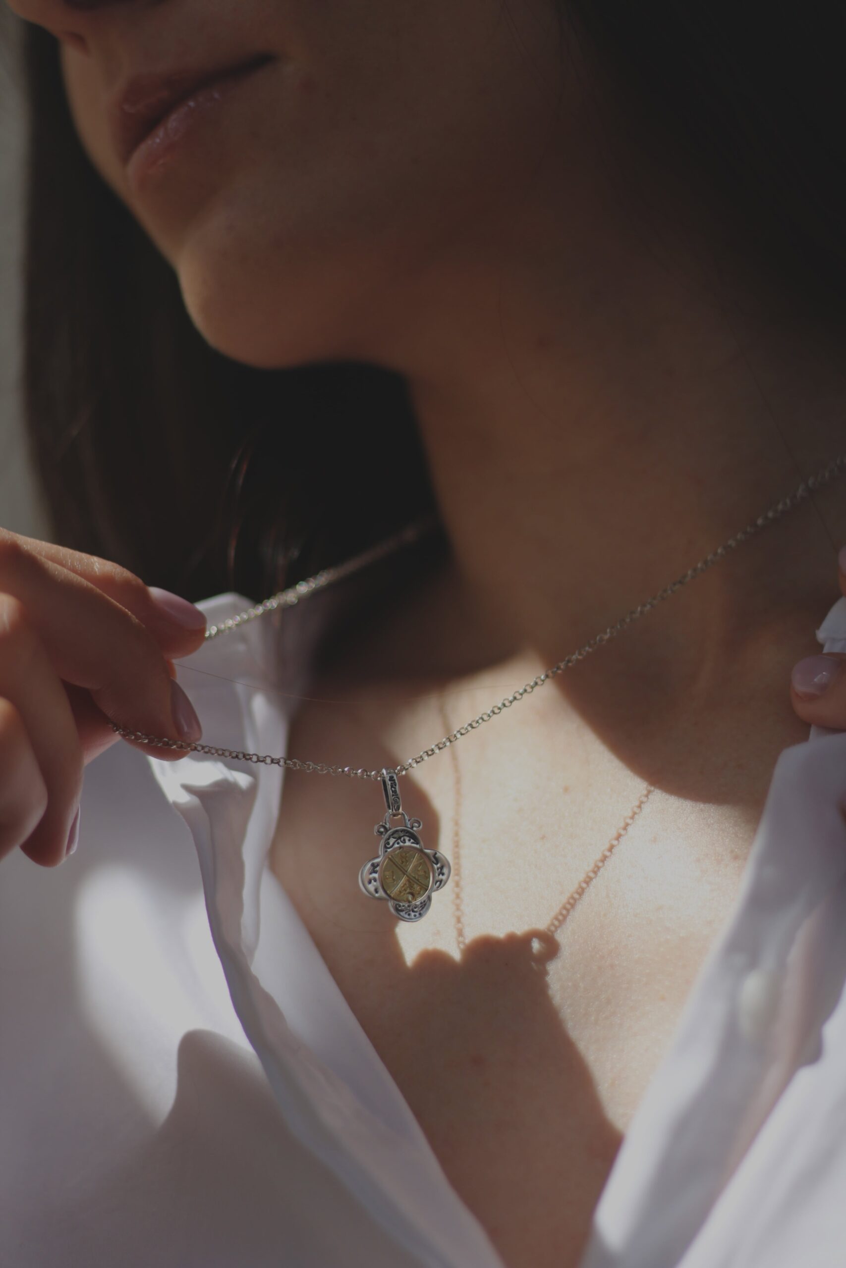 За всички ръчно изработени медальони във фабриката на Студио Николас, се използва високо качествено сребро с проба 925.3 грама сребро и 0,8 грама злато / 27мм х 17мм / предлага се без верижка!. Кабала амулет “ДЕТЕЛИНАТА на КЪСМЕТА”