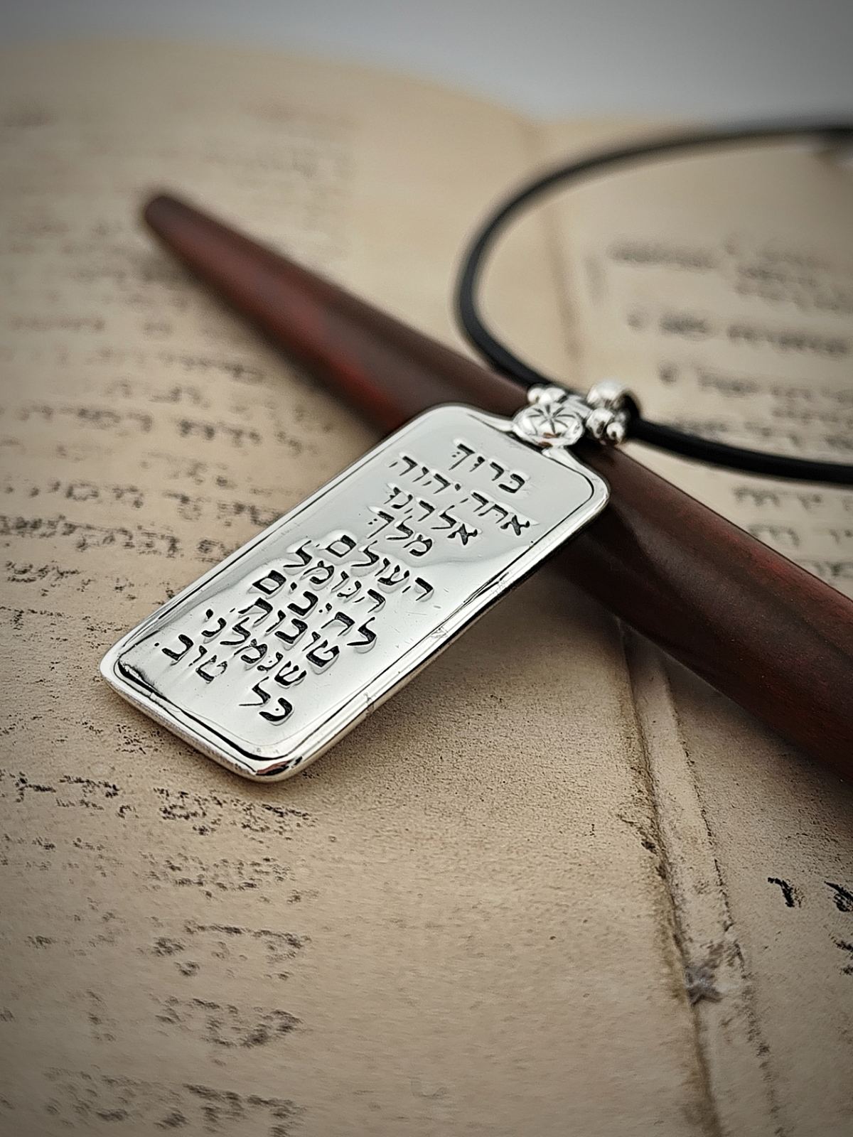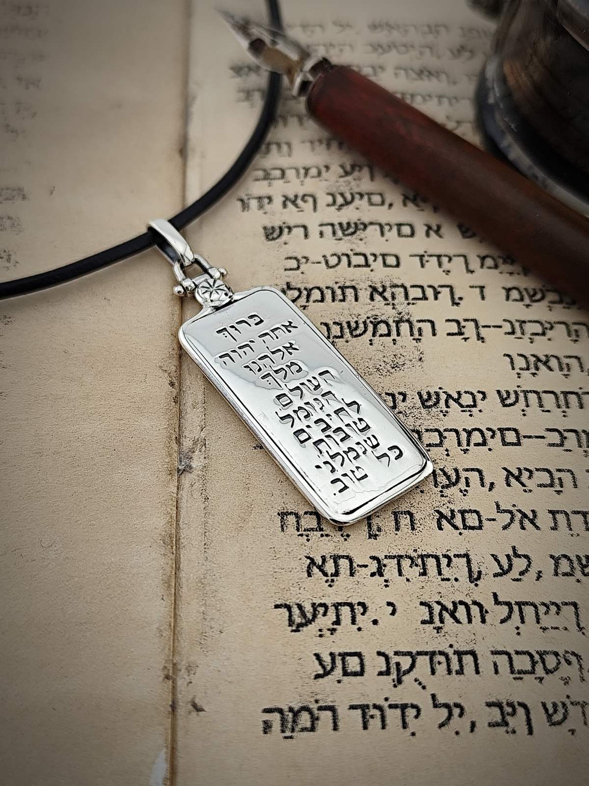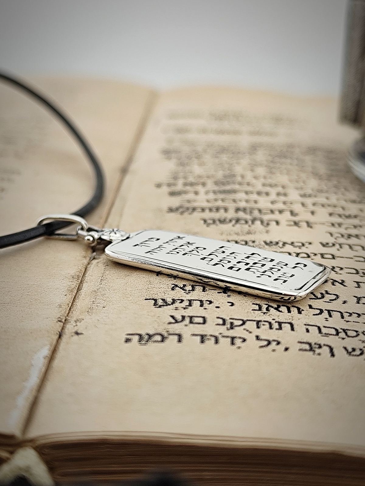 KABBALAH* сребърен амулет-талисман гравиран с молитвата за благодарност  “Биркат Хагомел”, сребърен медальон – правоъгълна плочка създаден от сребро с проба 925 във фабрика за бижута Студио Николас!