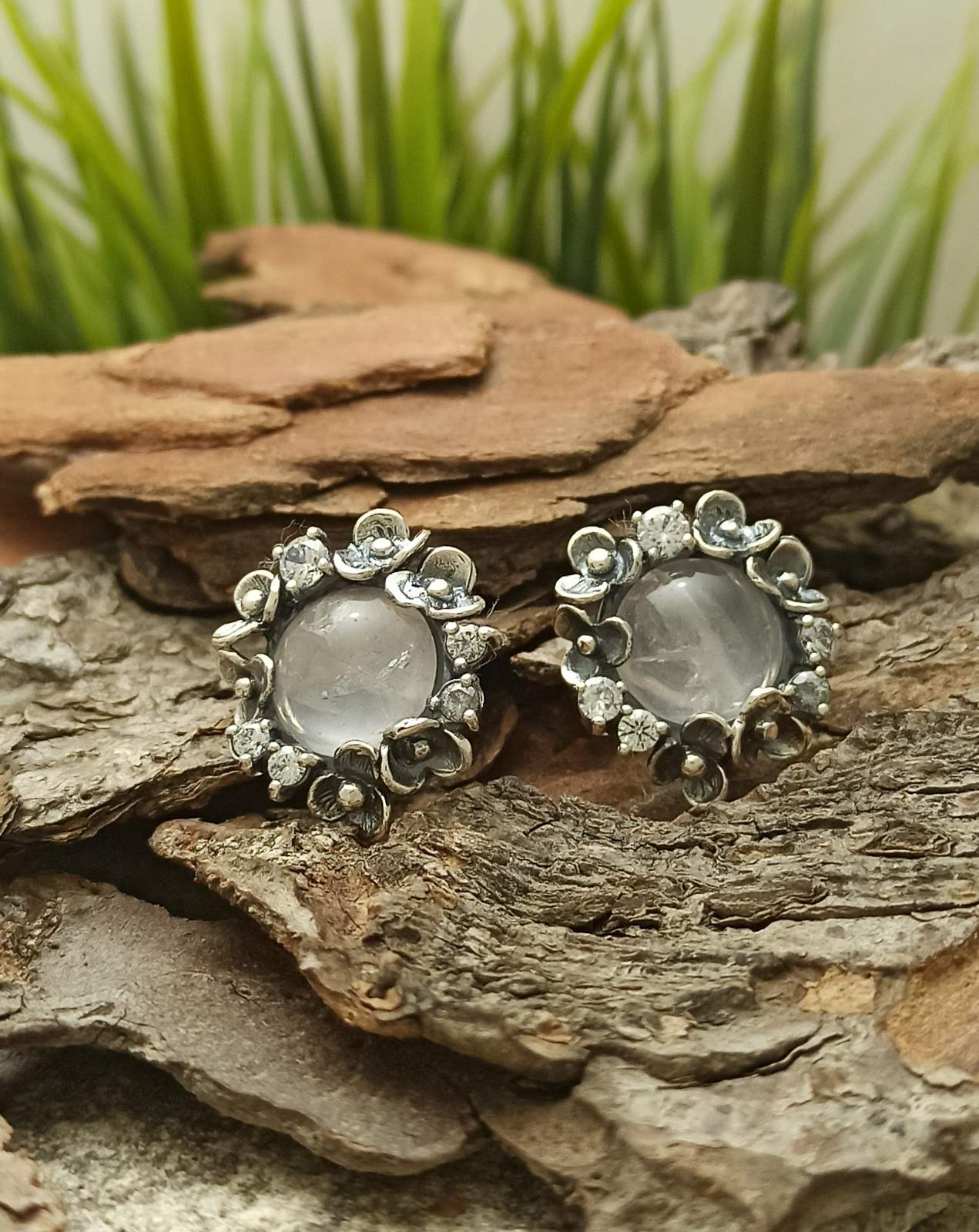 Сребърни обеци с планински кристал и циркони, авторски модел 1094E от фабрика за сребърна бижутерия – Студио Николас. Това е повече от бижу … Незабравимо е!